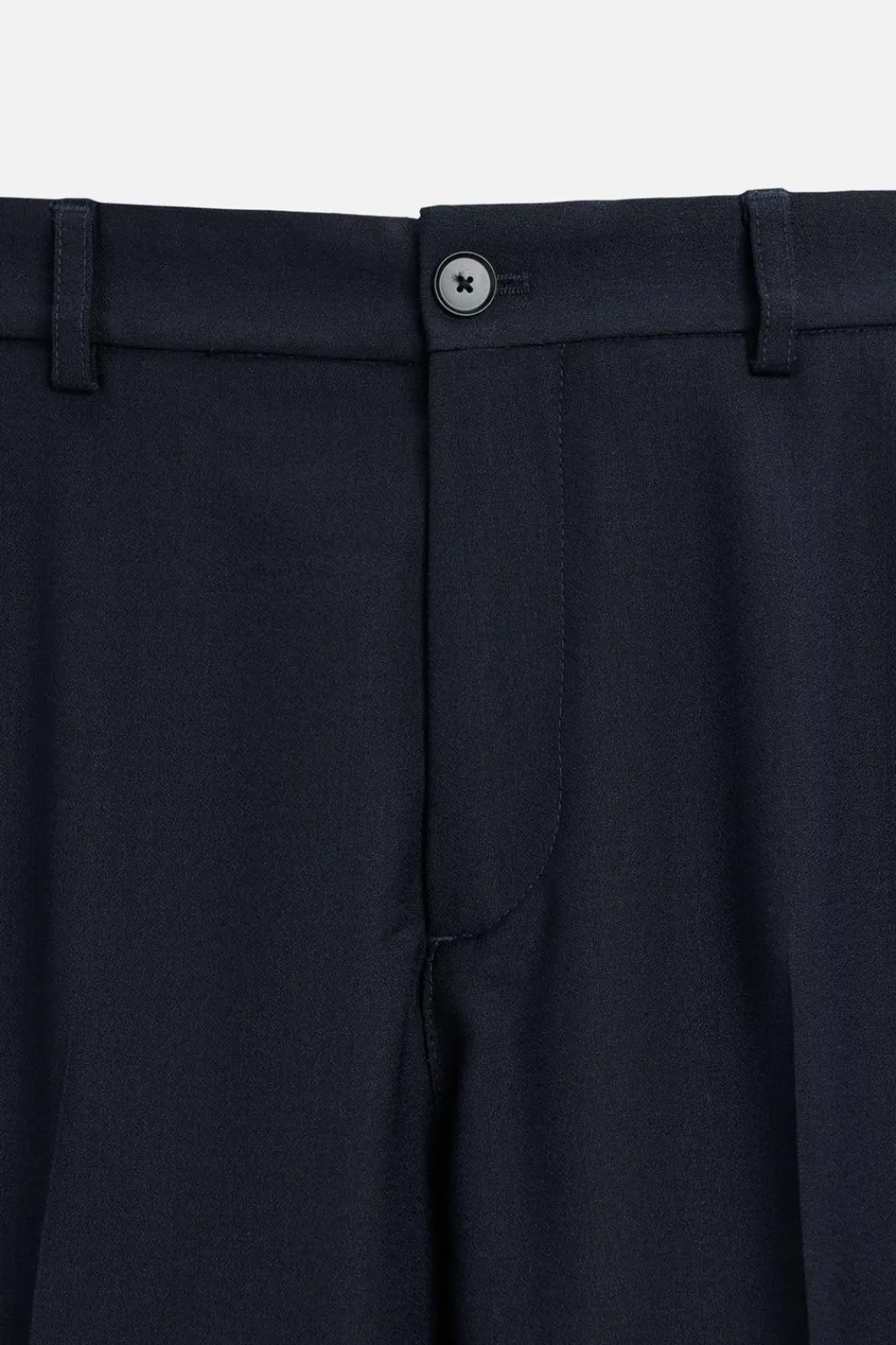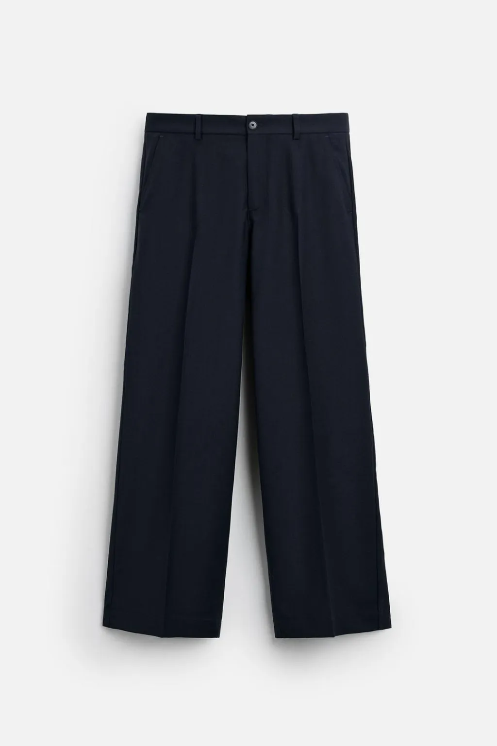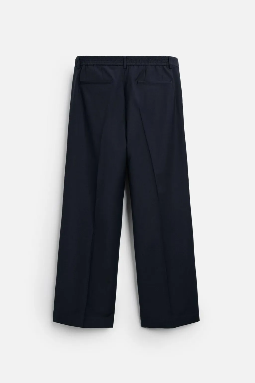 Pantalón relaxed fit confeccionado en tejido con lana. Cintura elástica. Bolsillos frontales y detalle de bolsillos traseros de vivo. Cierre frontal con cremallera y botón.