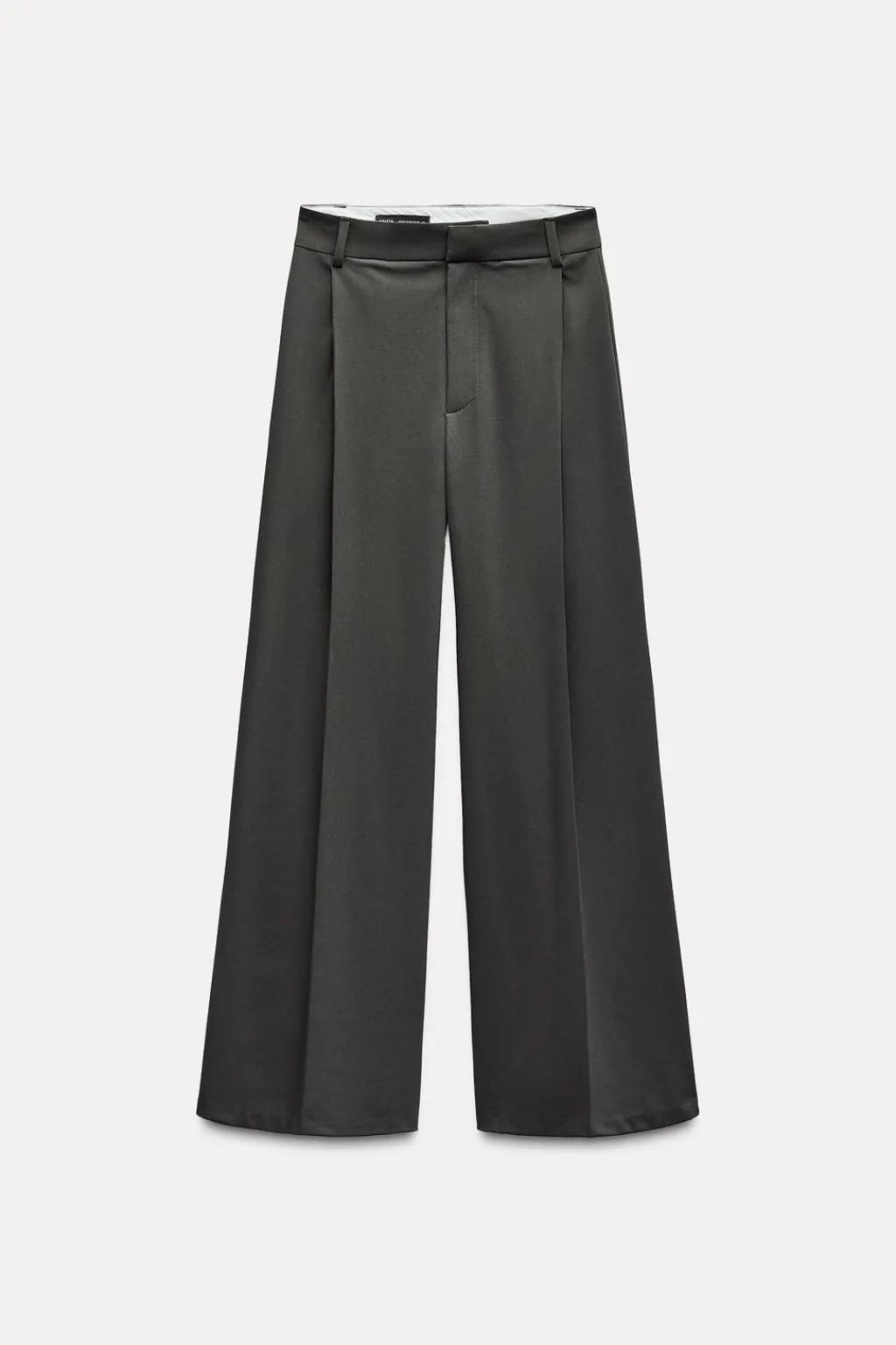 Pantalón de tiro alto con trabillas. Bolsillos laterales y de vivo en espalda. Detalle de pliegue en delantero. Cierre en delantero con cremallera, botón interior y ganchos metálicos.