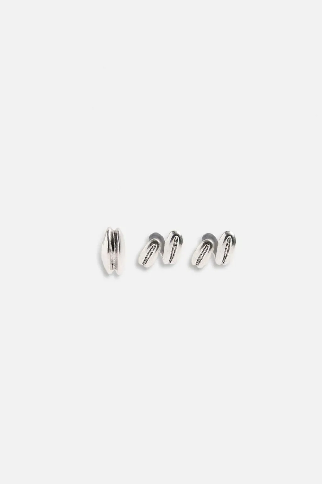 Pack compuesto por pendientes asimétricos metálicos acabados con baño de plata 925 MM.