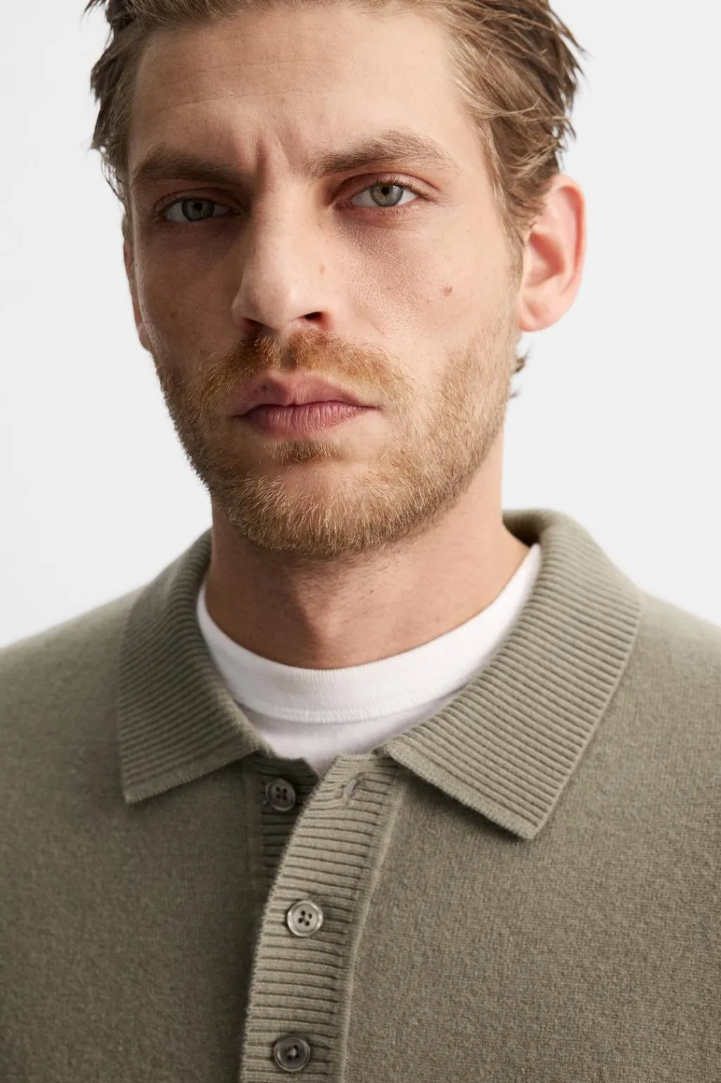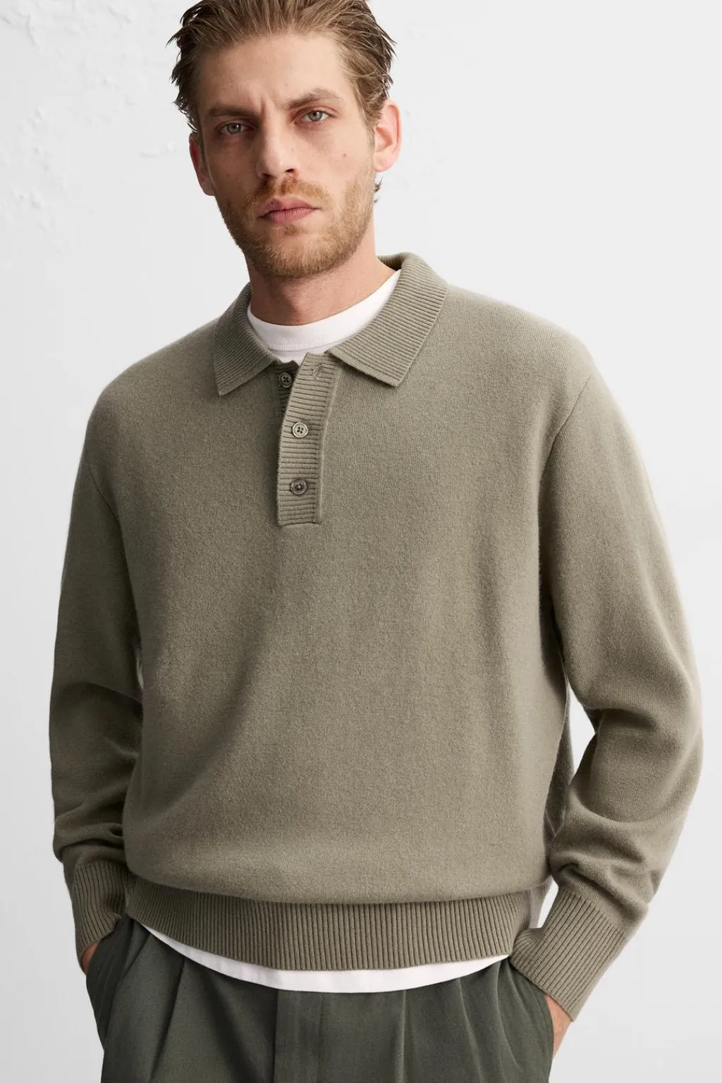 Polo de punto regular fit tejido en hilatura con lana. Cuello solapa con cierre frontal de botonadura. Manga larga. Acabados en rib.