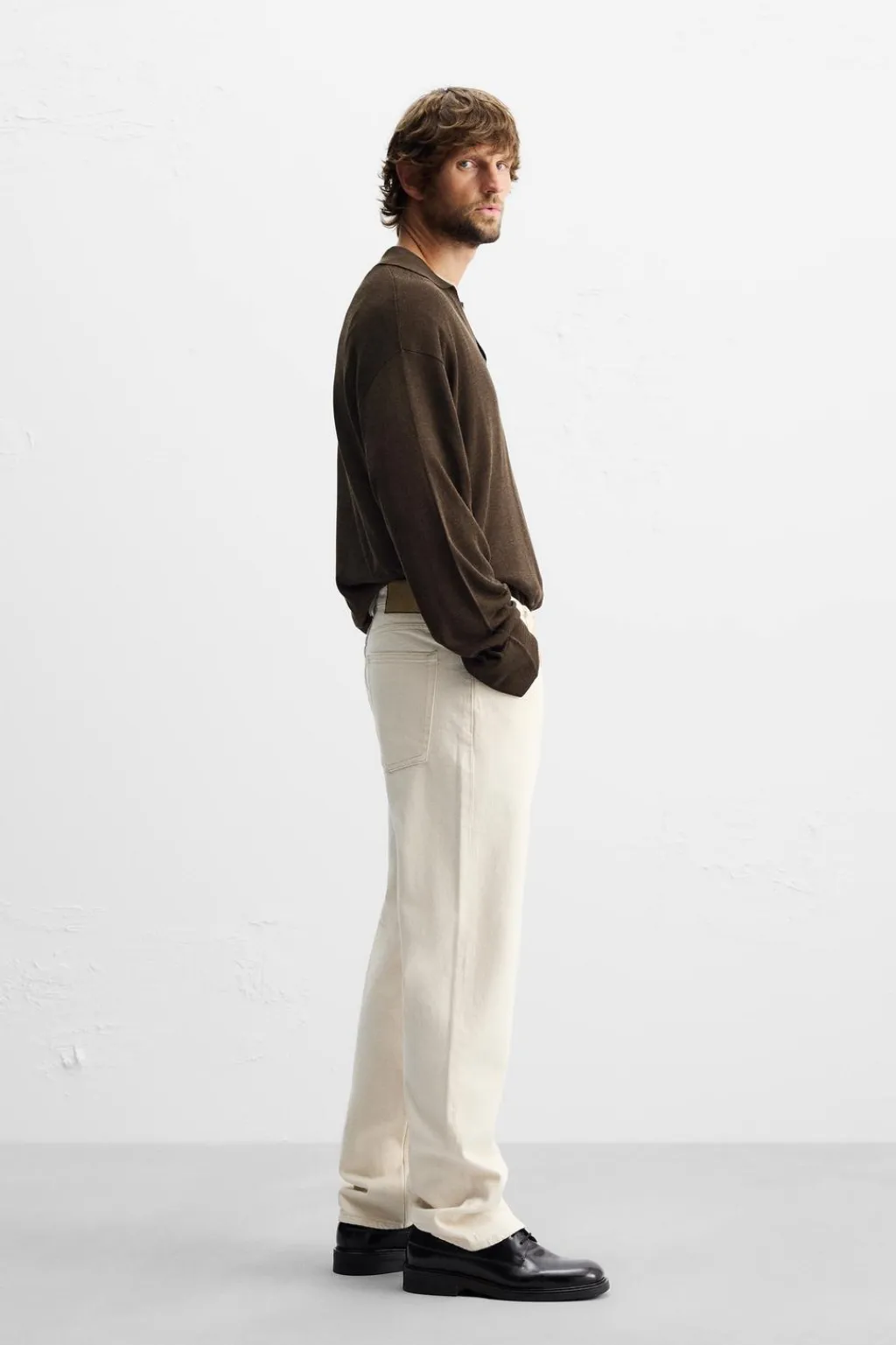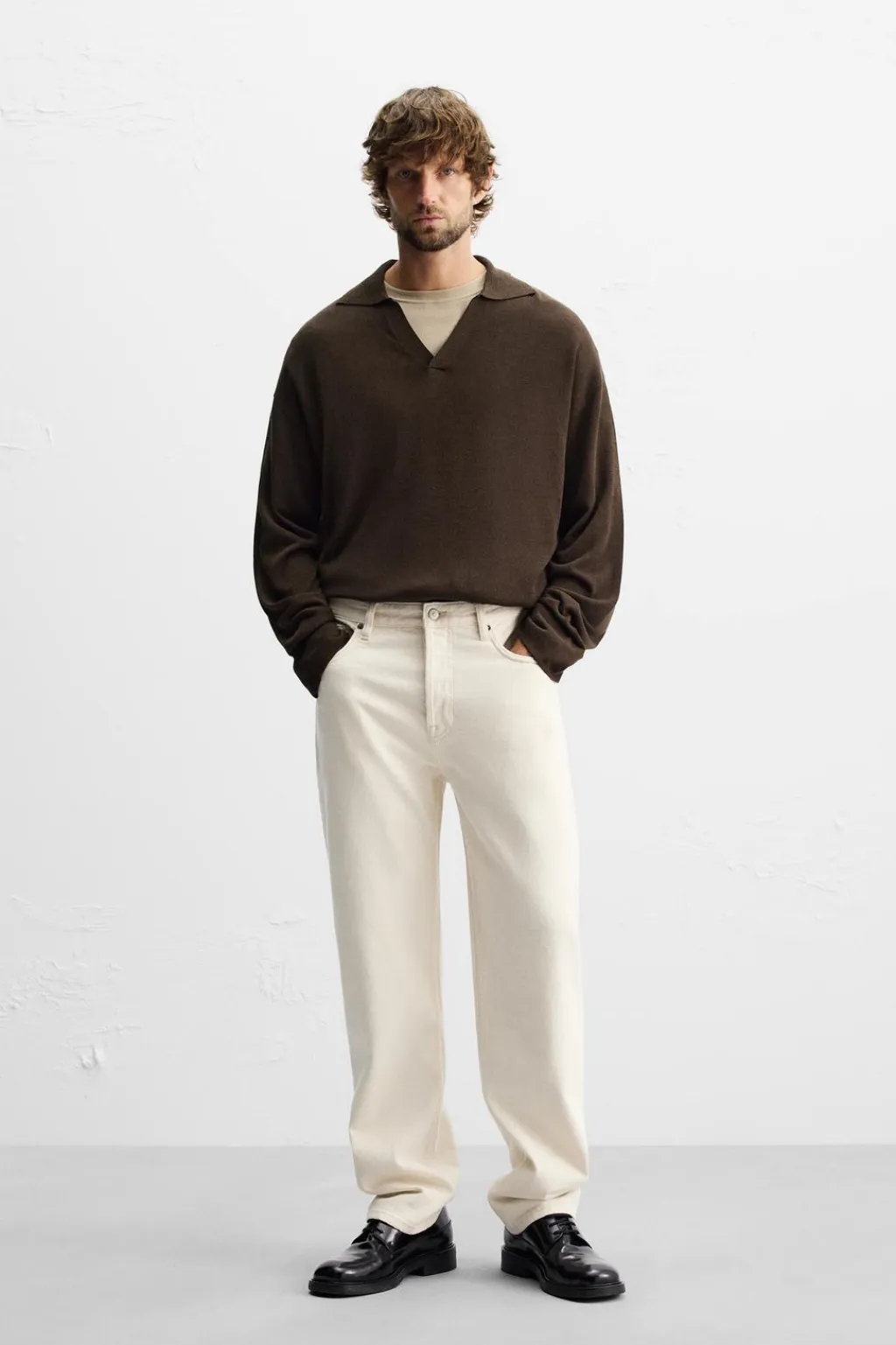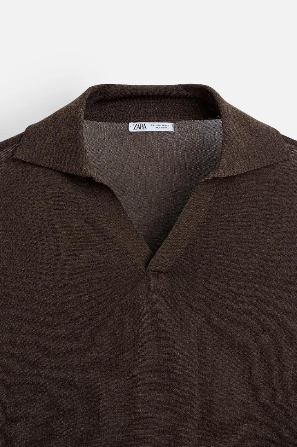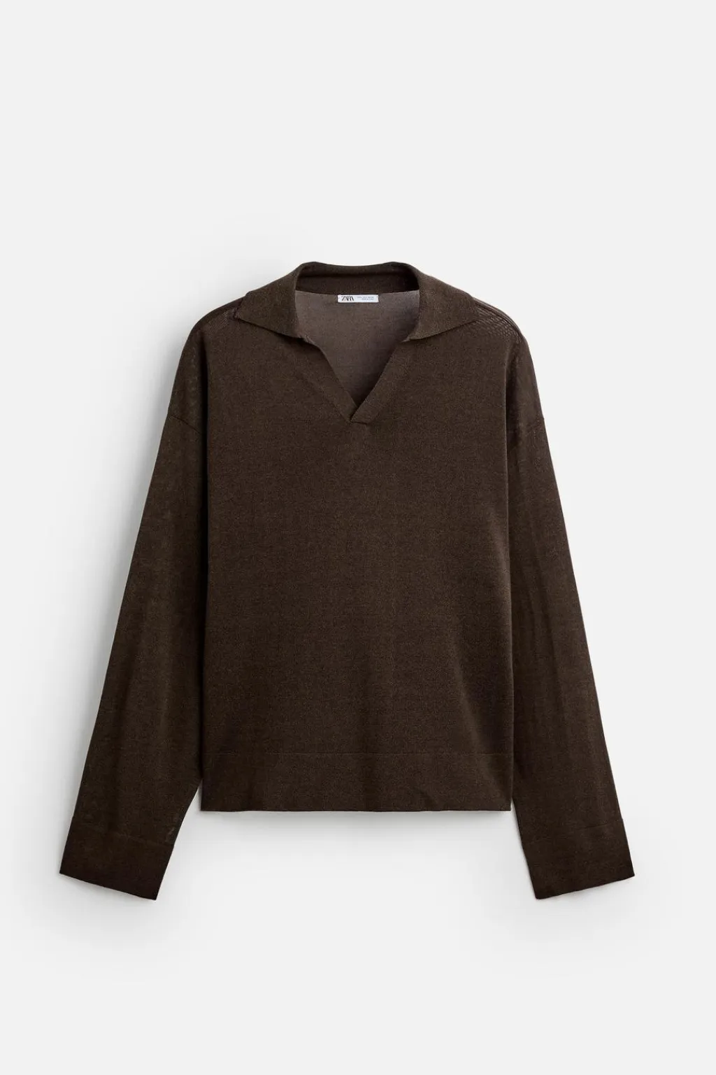 Polo tejido en hilatura con mezcla de viscosa y algodón. Cuello solapa con abertura frontal. Manga larga.