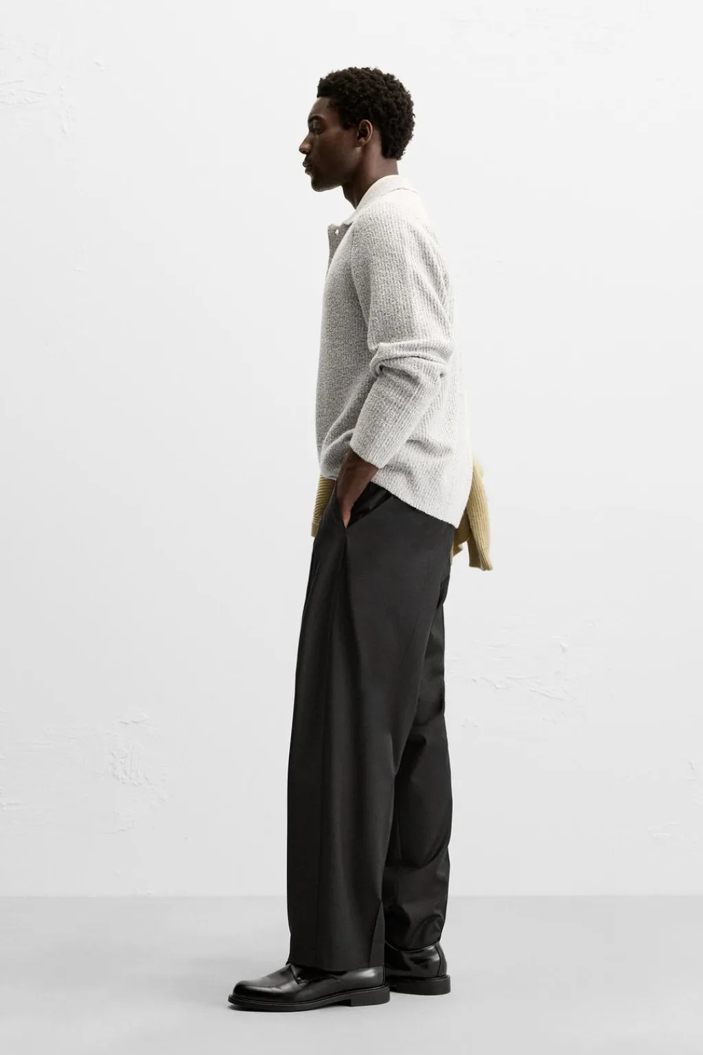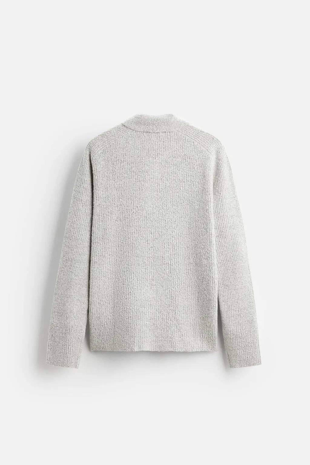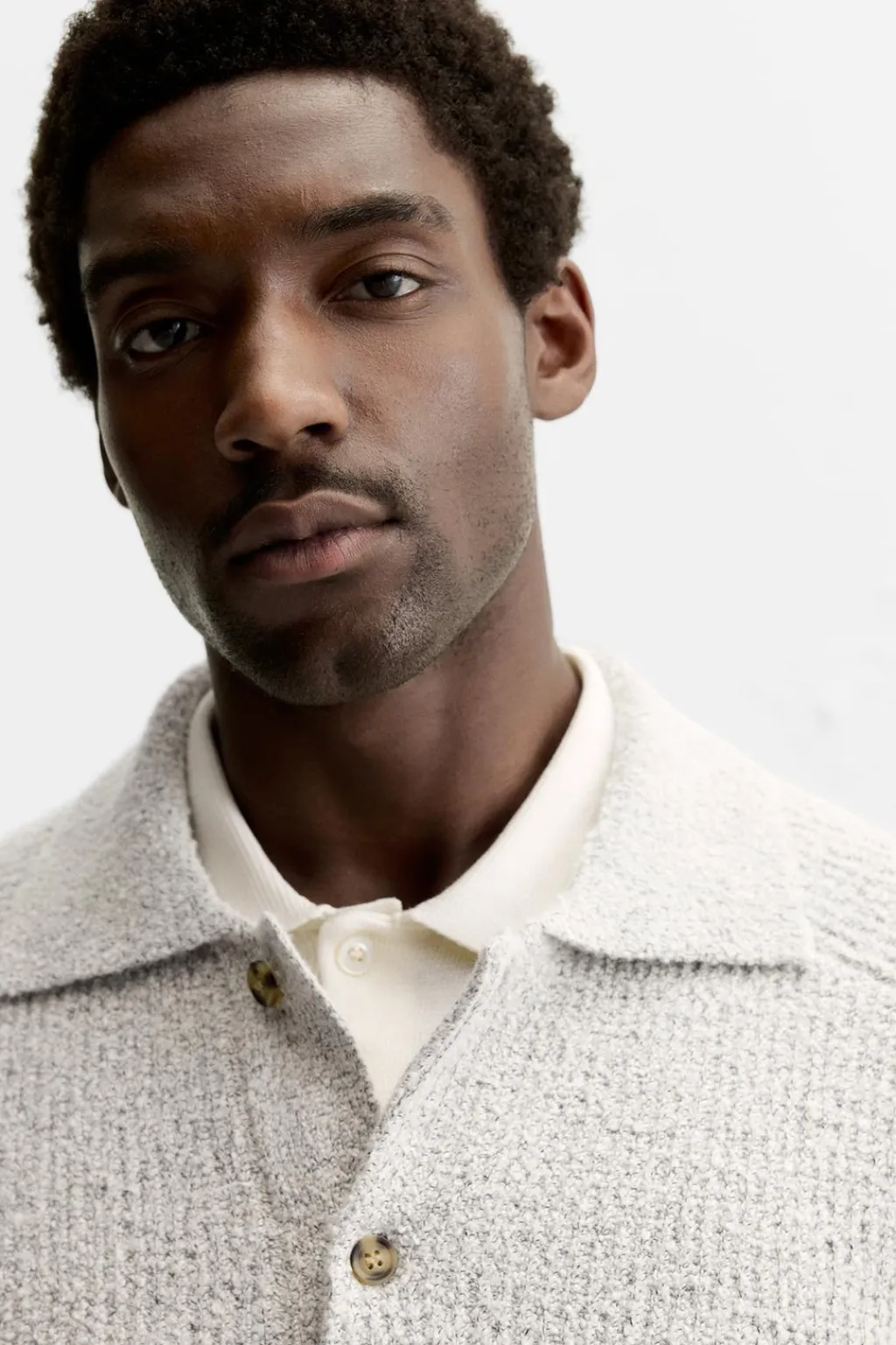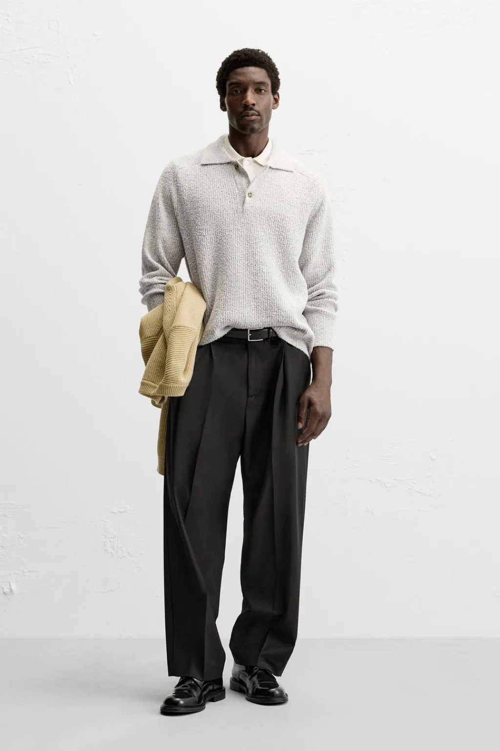 Polo regular fit tejido en hilatura con textura bouclé. Cuello solapa con cierre frontal de botonadura. Manga larga.