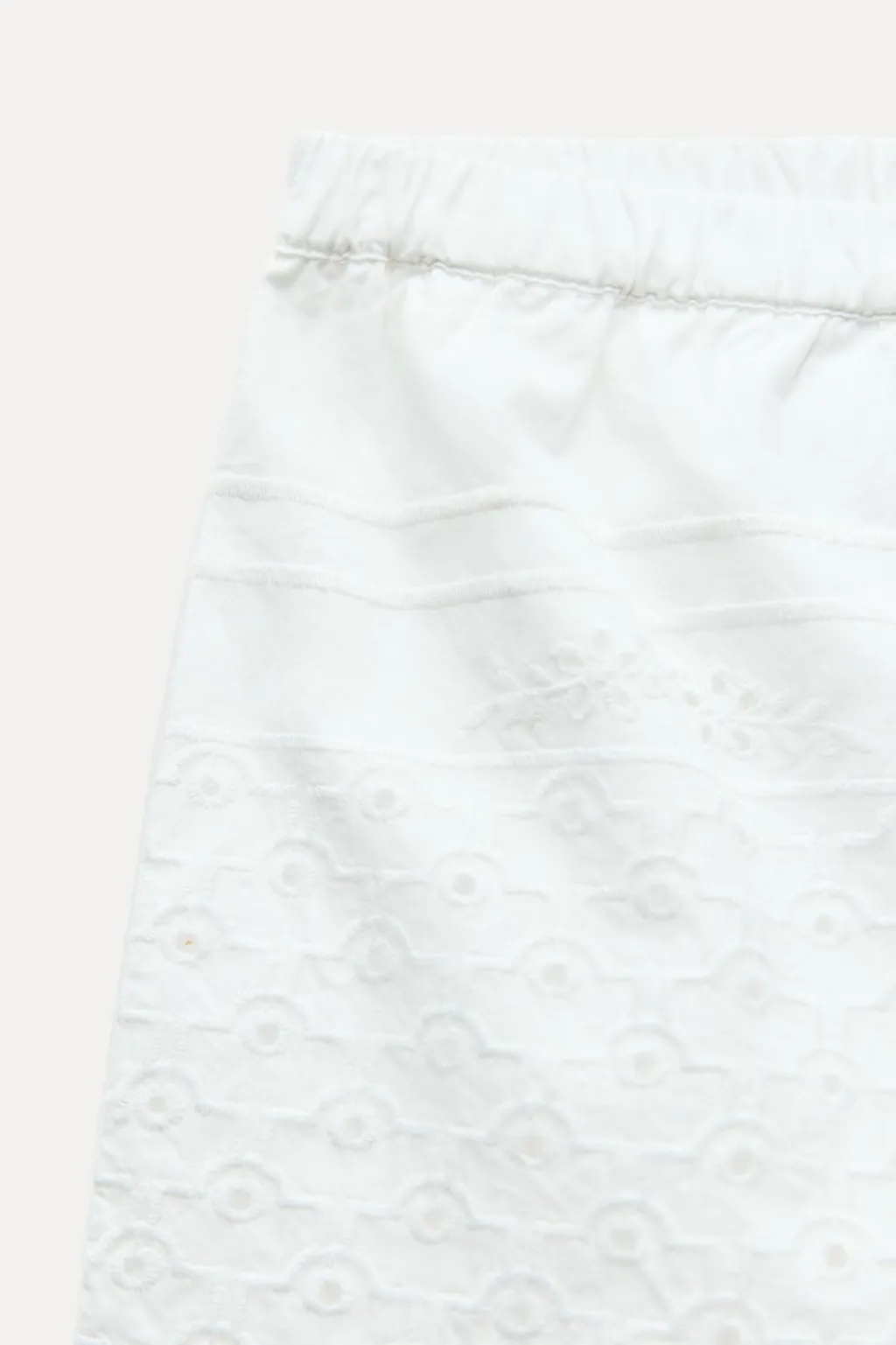 Shorts de tiro medio con cintura elástica. Bolsillos laterales ocultos en costura. Bordados combinados a tono.