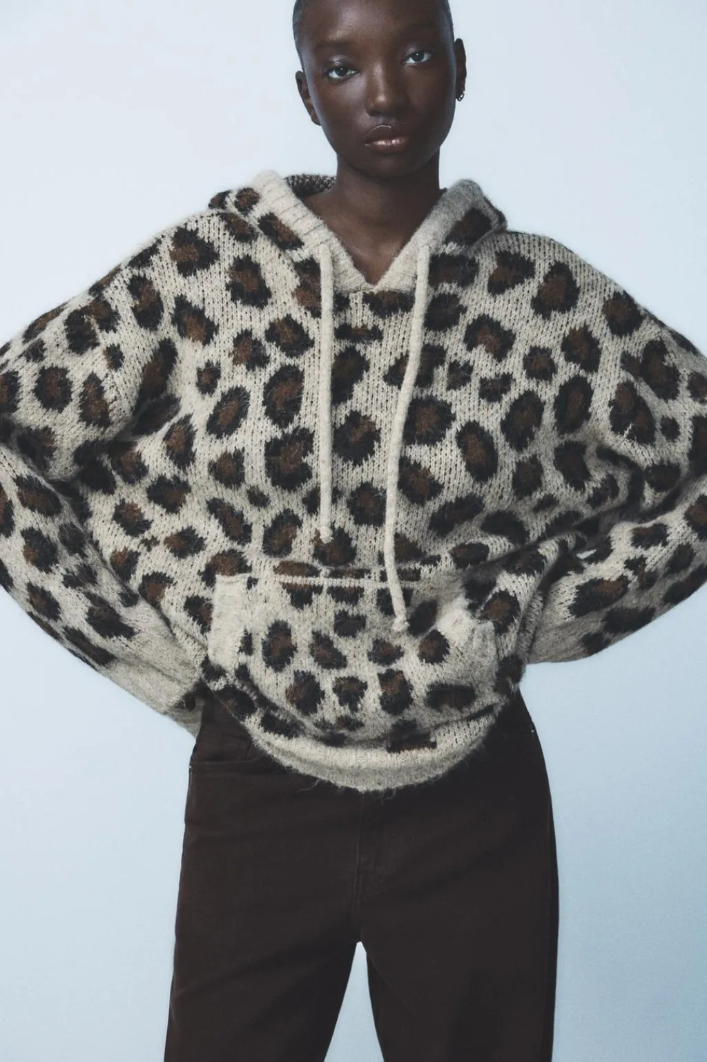 Sudadera oversize con capucha ajustable con cordones y manga larga. Bolsillo delantero. Acabados en rib.