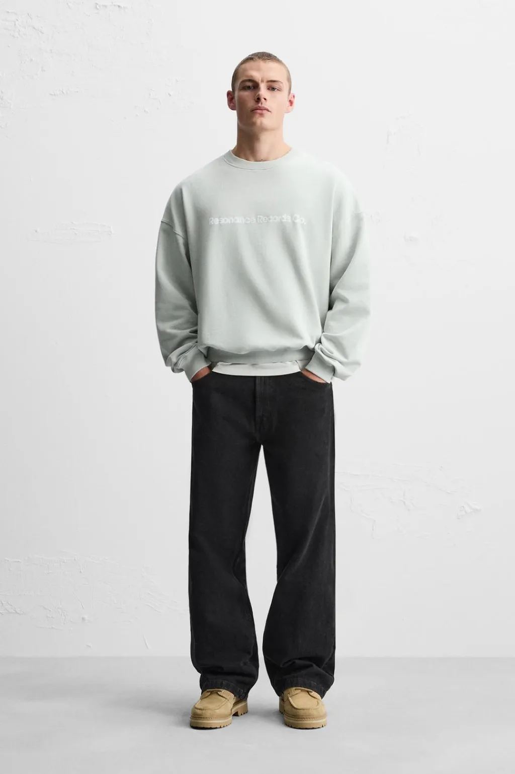 Sudadera relaxed fit con cuello redondo y manga larga. Textos estampados combinados a contraste en delantero y espalda. Acabados en rib.