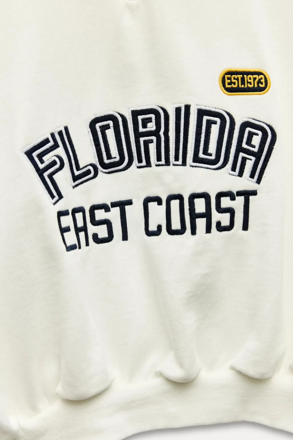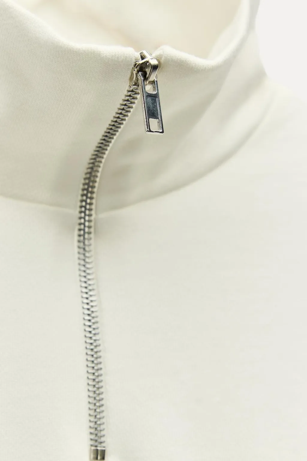 Sudadera de cuello subido con cremallera y manga larga. Acabados en rib elástico. Detalle de texto en delantero.