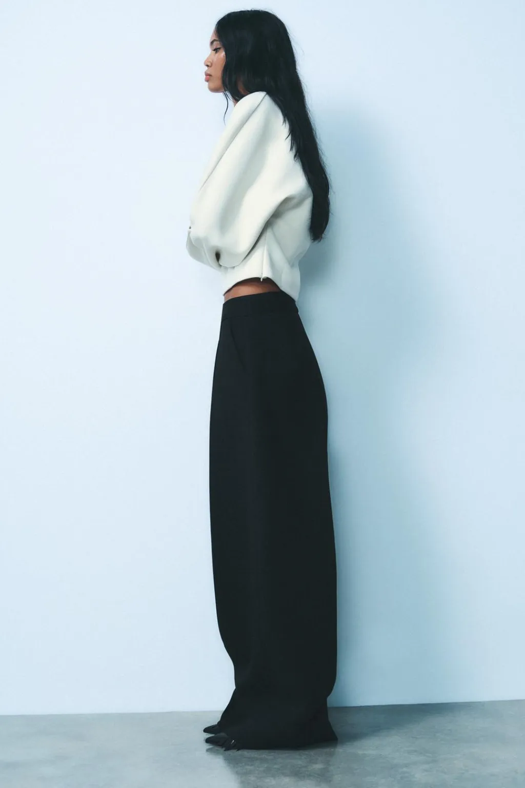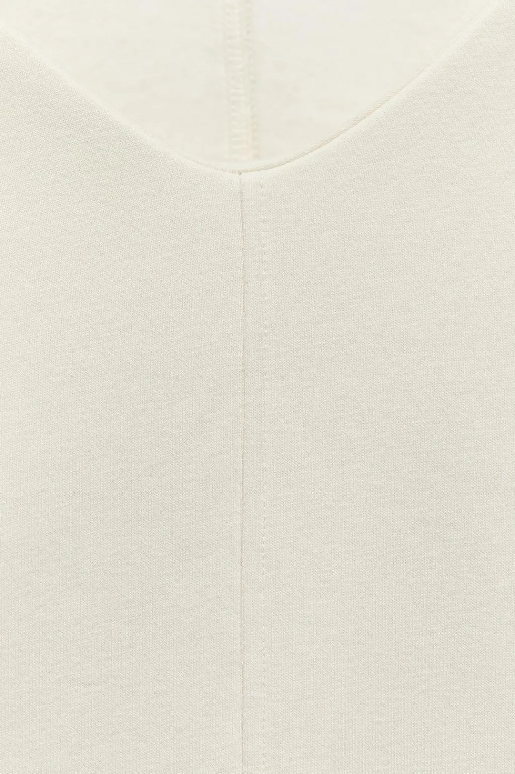Top de cuello pico y manga larga. Cintura entallada. Cierre lateral con cremallera oculta en costura.