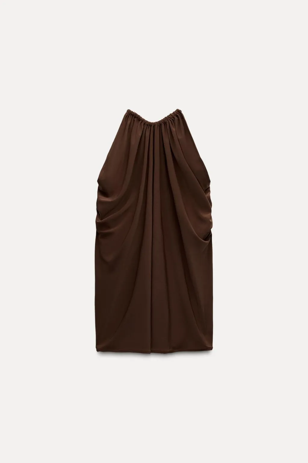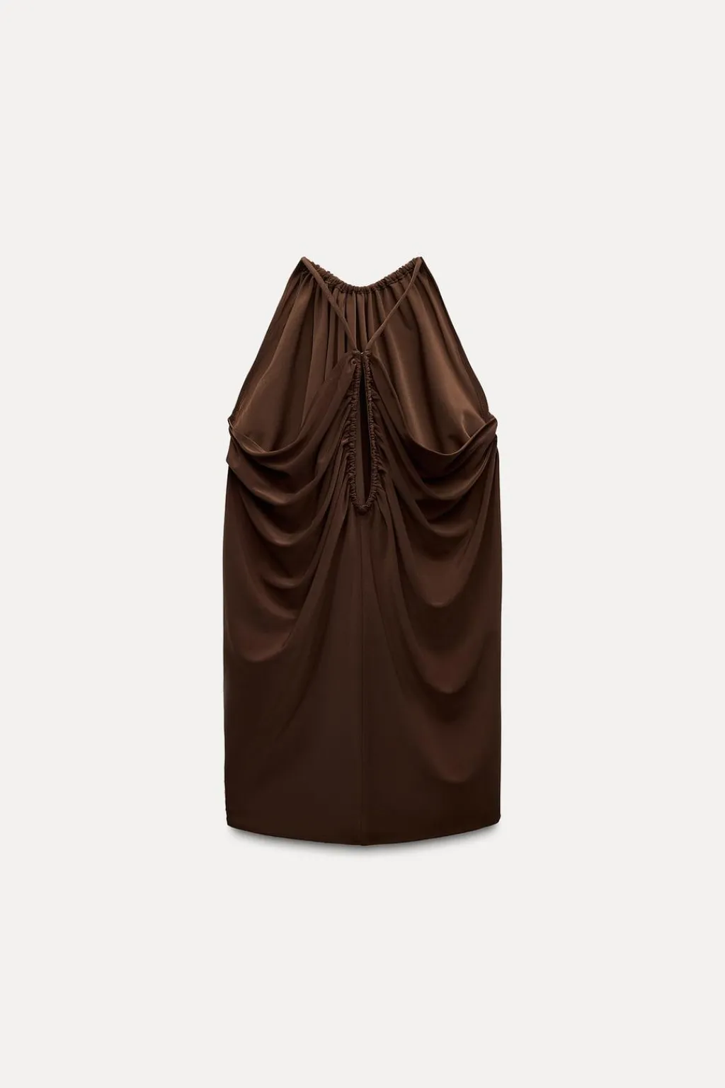 Top de cuello halter y tirantes finos. Detalle de pliegues en delantero.