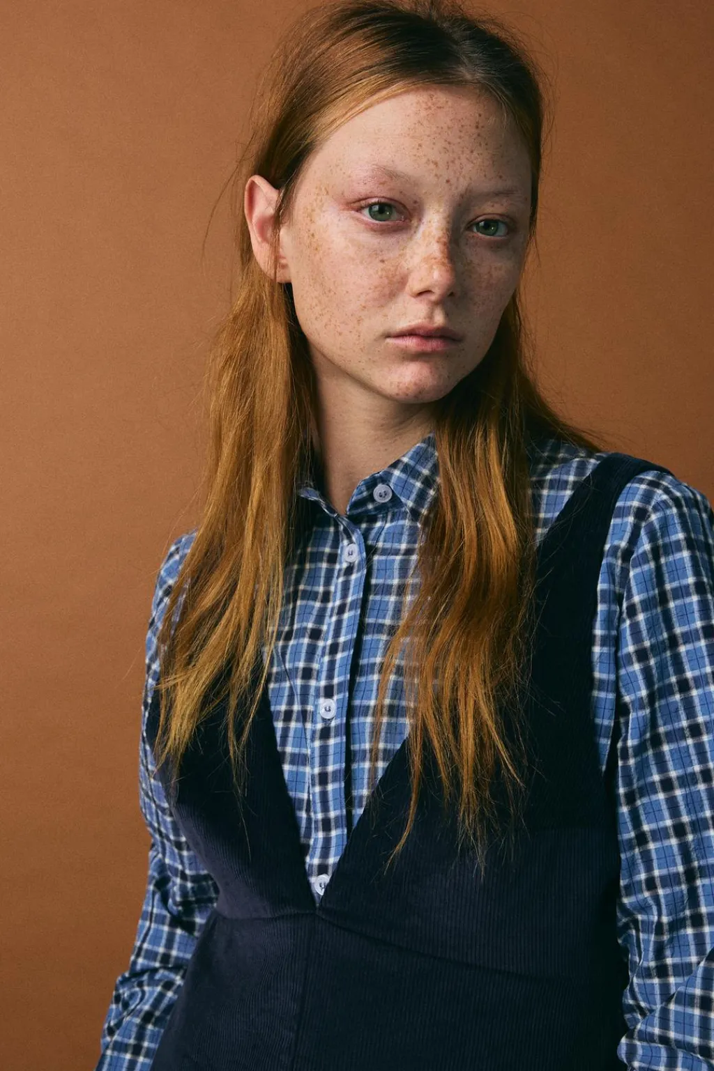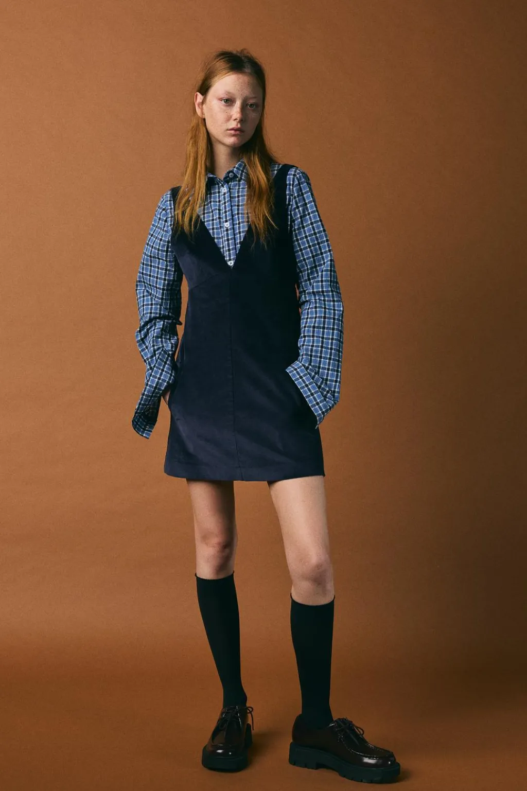 Top confeccionado en pana. Escote pico y tirantes. Bolsillos de vivo en laterales. Cierre en espalda con cremallera oculta en costura.
