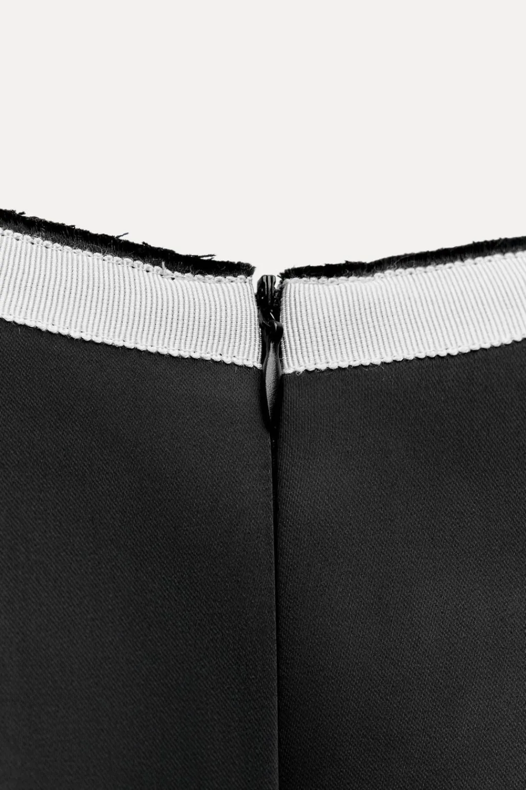 Vestido corto de cuello redondo y manga sisa. Acabados a contraste. Cierre en espalda con cremallera oculta en costura.