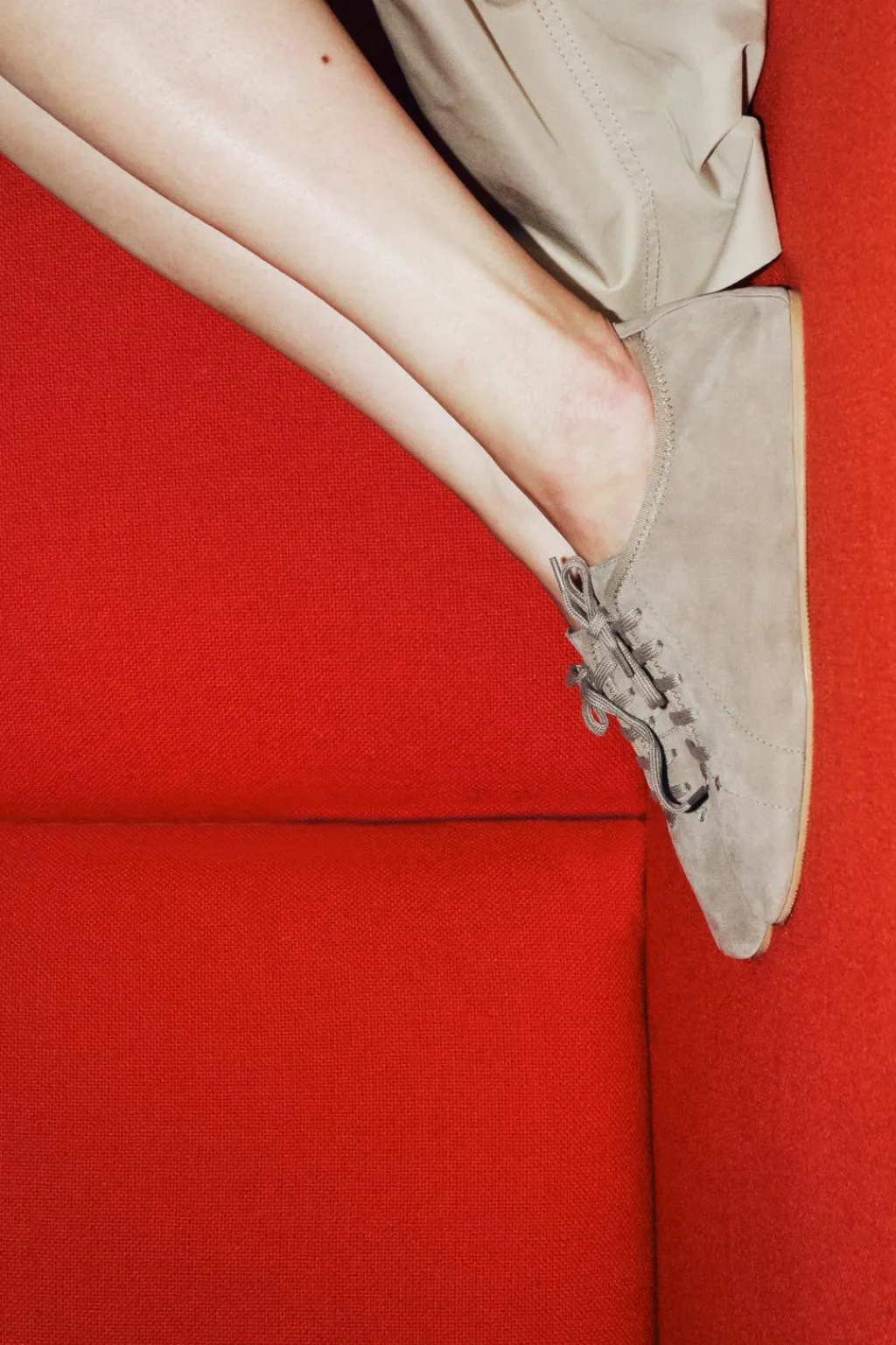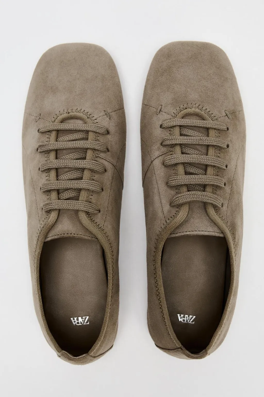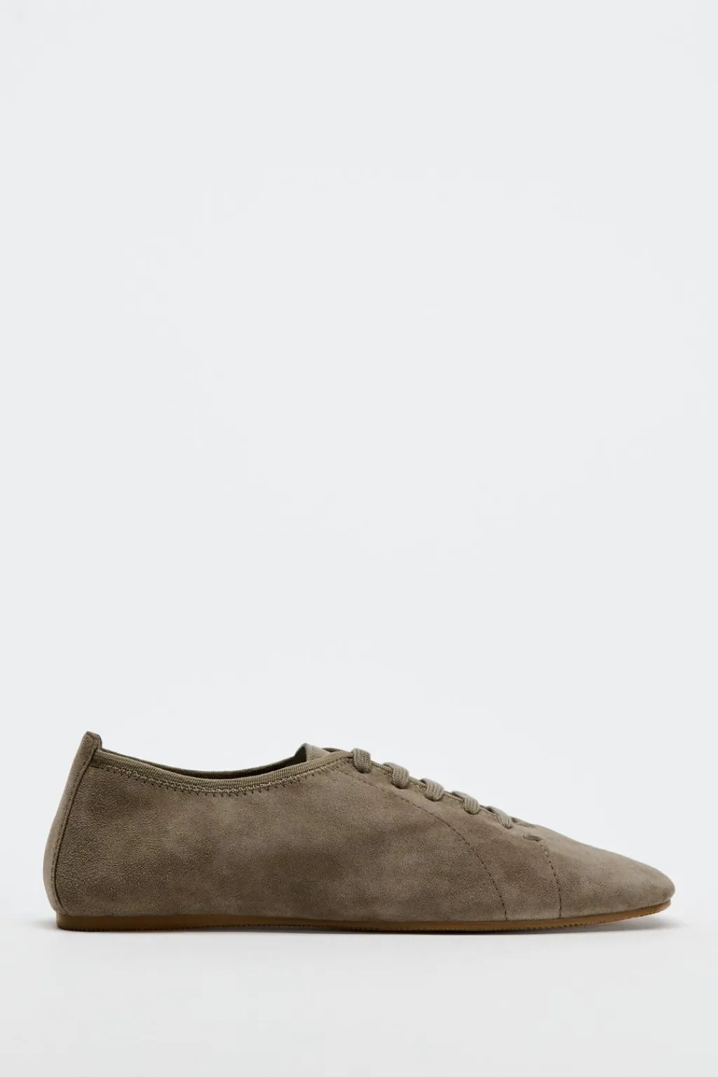 Zapato plano tipo blucher en ante. Cierre mediante cordones.