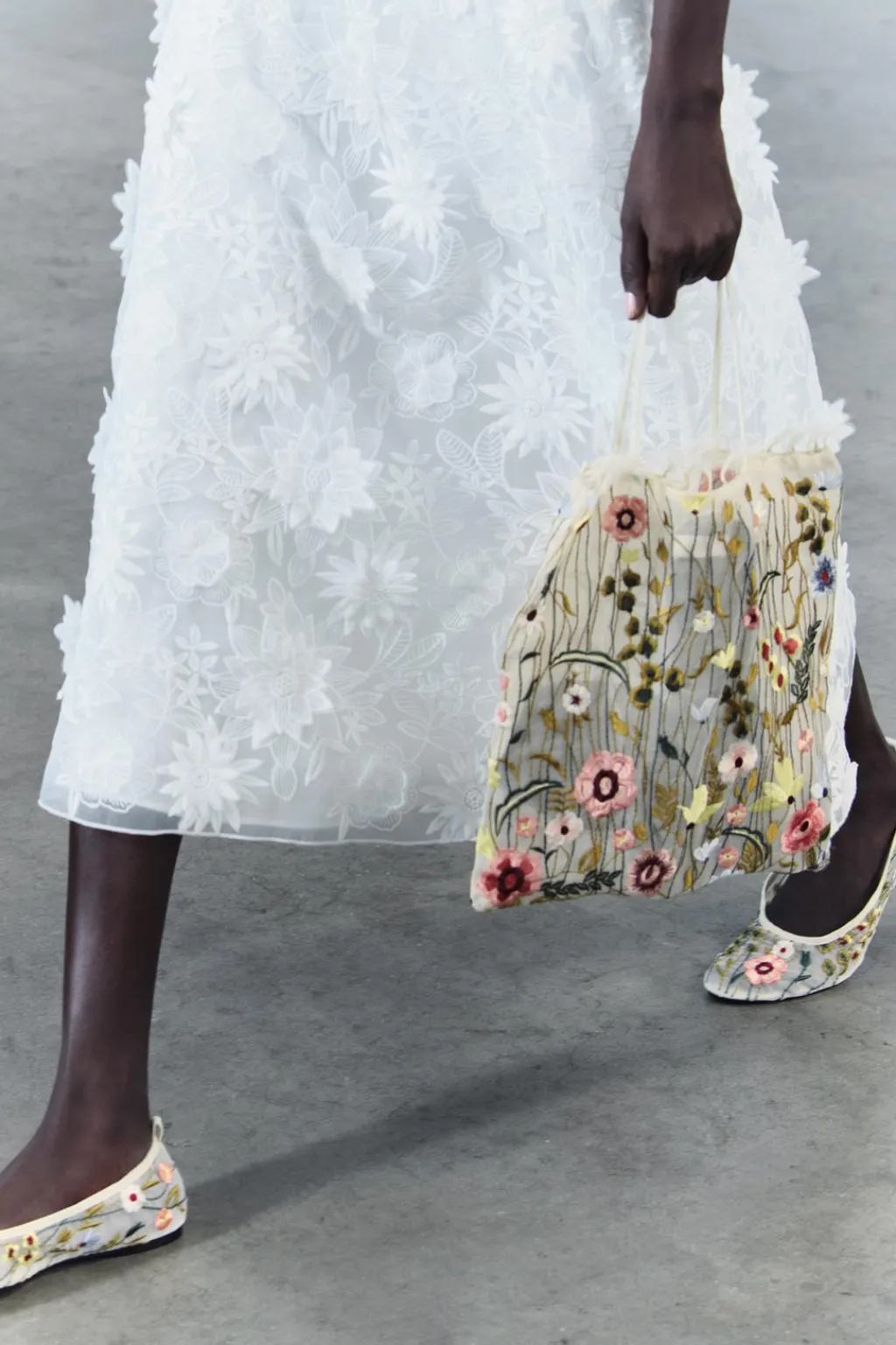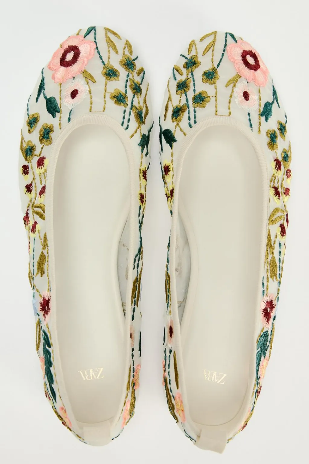 Zapato plano tipo bailarina mercedita. Estampado floral. Tirador trasero.