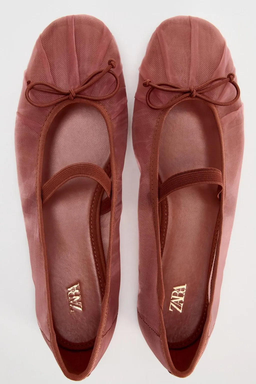 Zapato plano tipo bailarina en tejido mesh. Detalle de lazo y fruncido en la parte delantera. Tira elástica en el empeine.