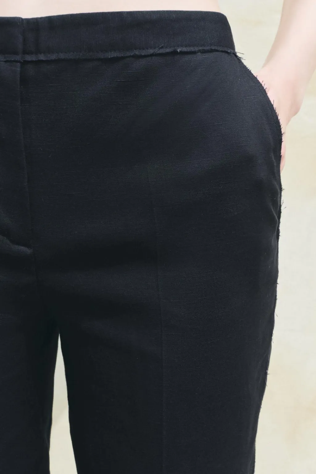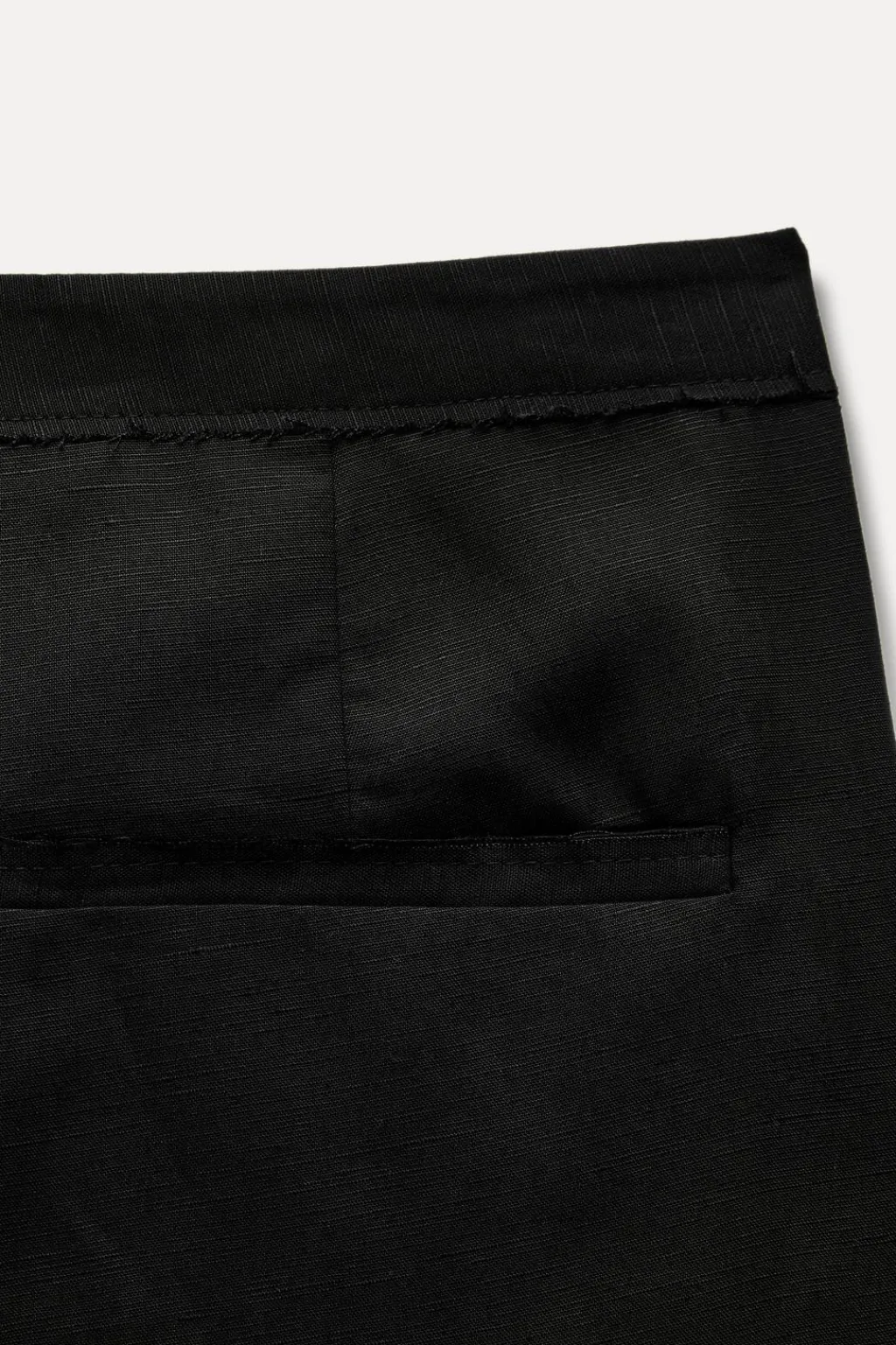 Bermuda larga de tiro alto. Bolsillos laterales y de vivo en espalda. Cierre frontal con cremallera, botón interior y gancho metálico.