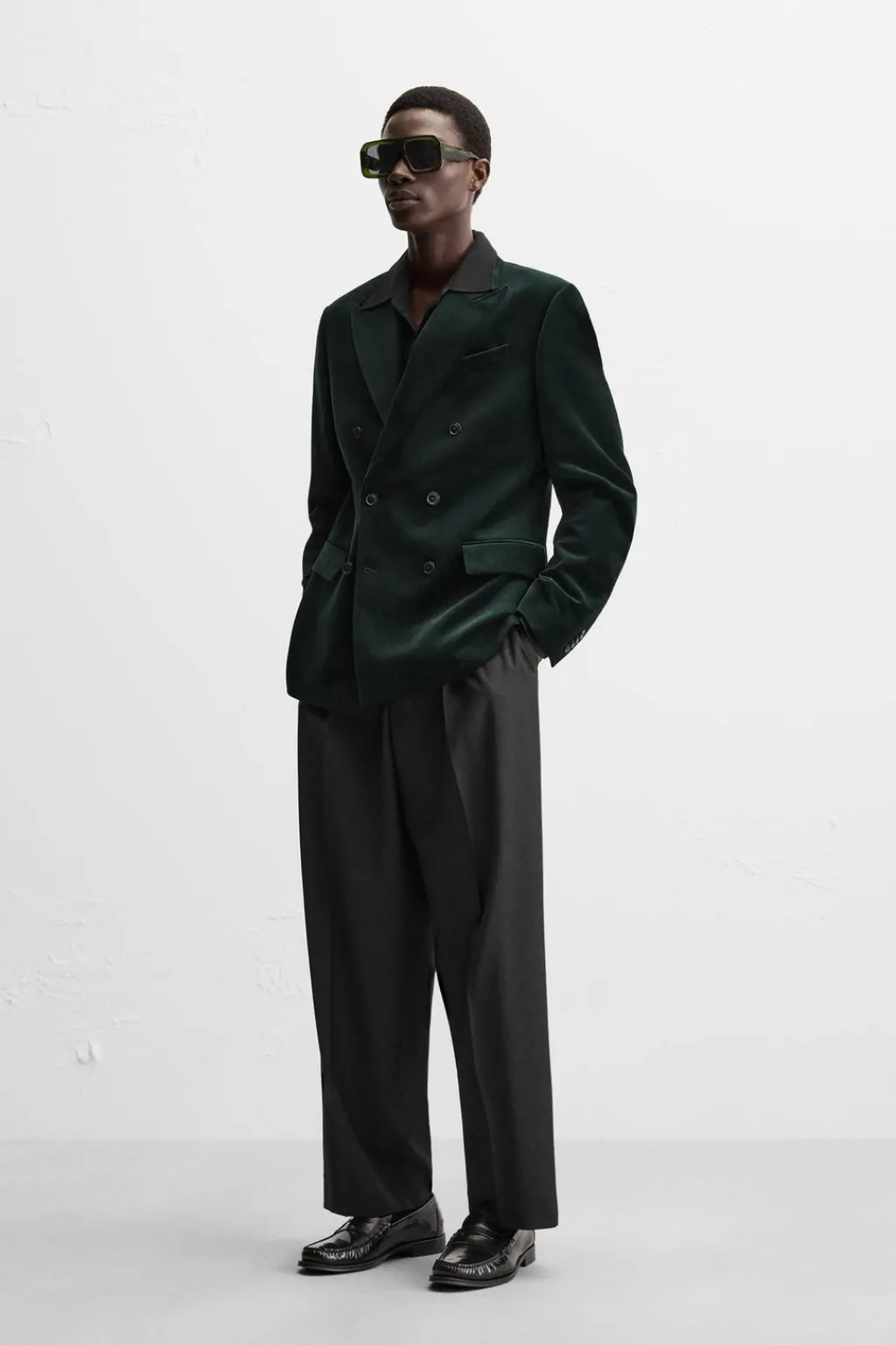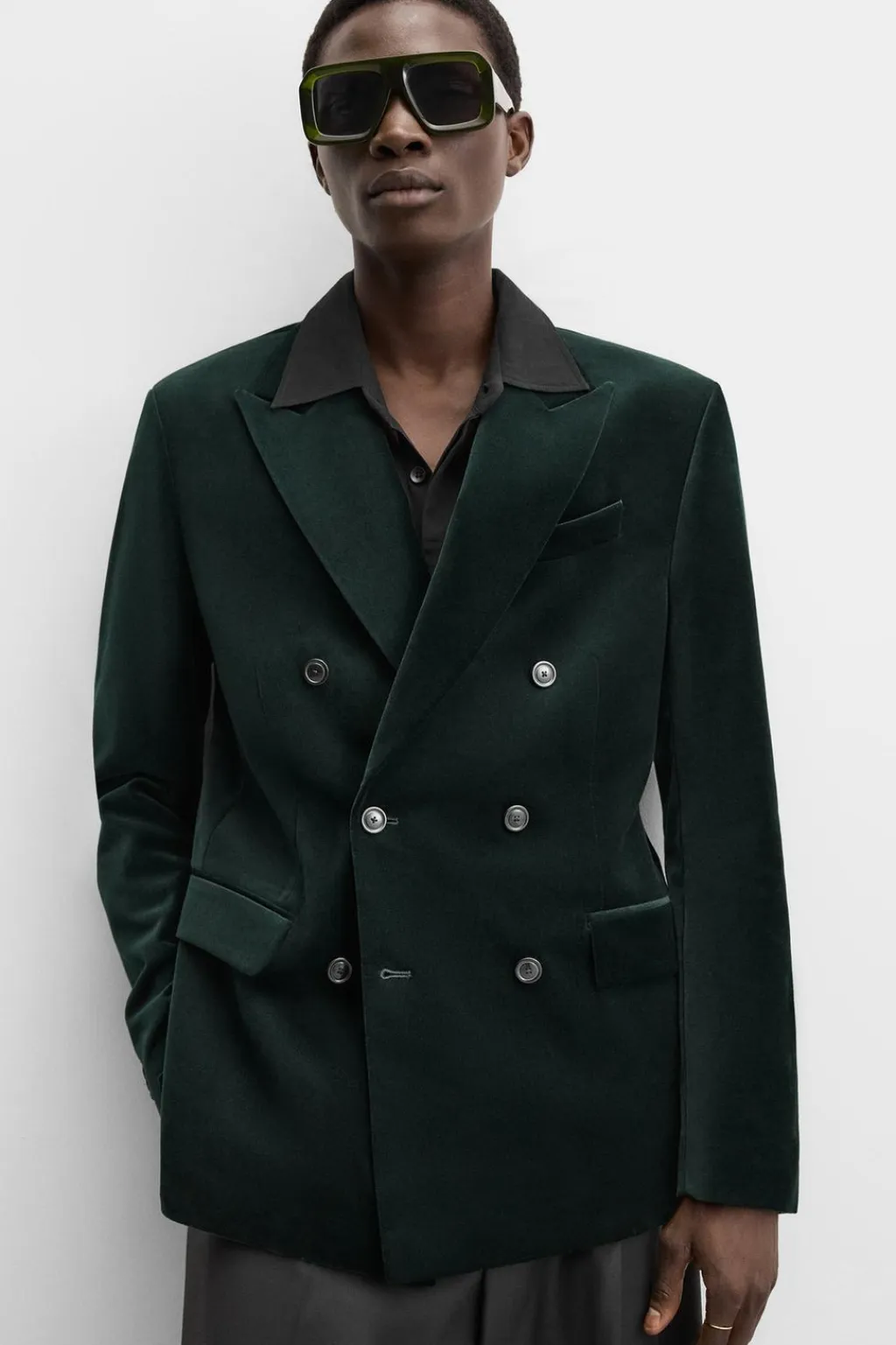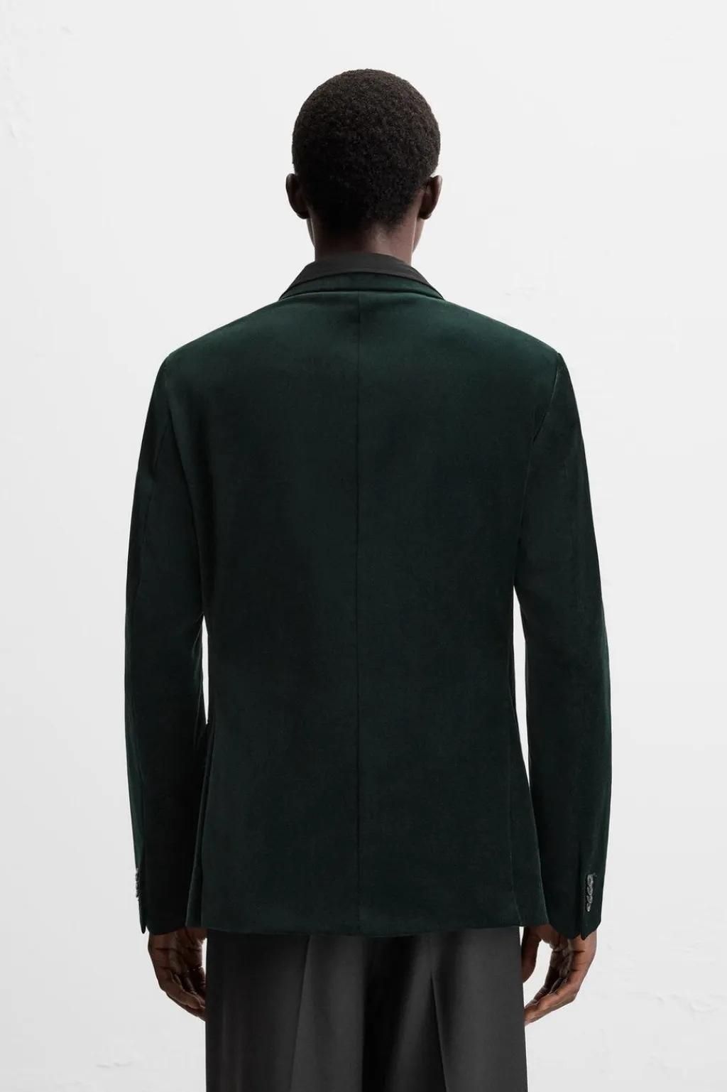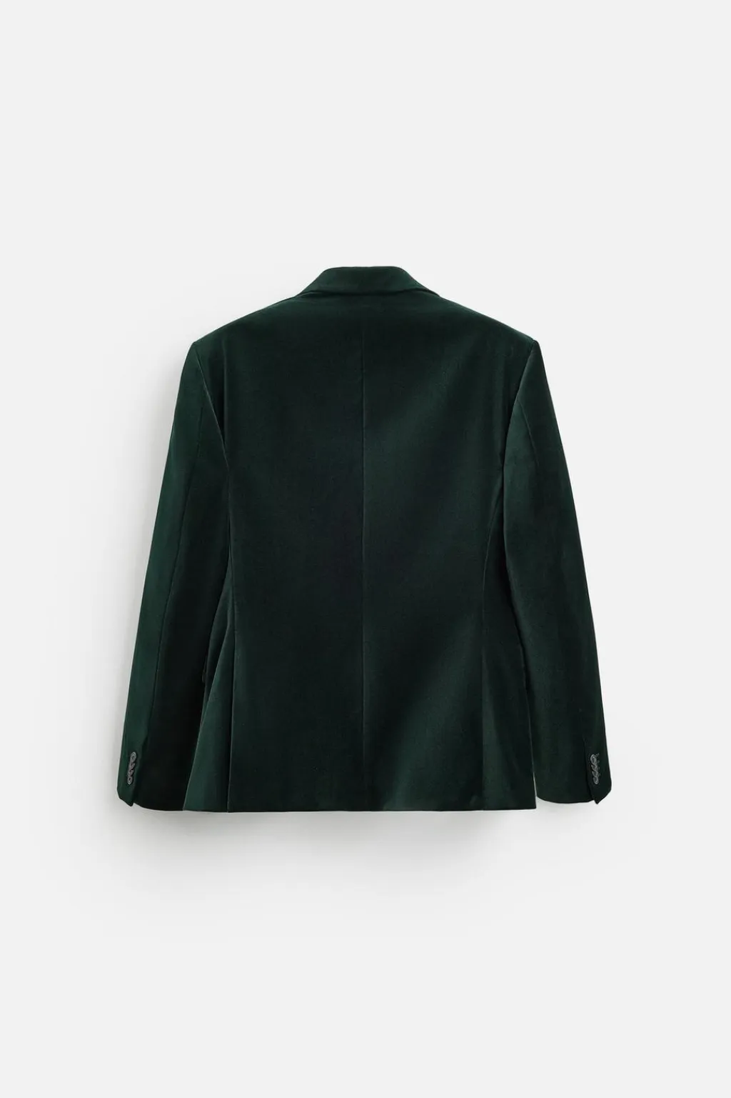 Blazer straight fit confeccionada en tejido de terciopelo. Cuello con solapas de pico y manga larga acabada en puño con botones. Bolsillos de vivo en pecho y de solapa en cadera. Detalle de bolsillo interior. Bajo con abertura en centro espalda. Cierre frontal de botonadura cruzada.