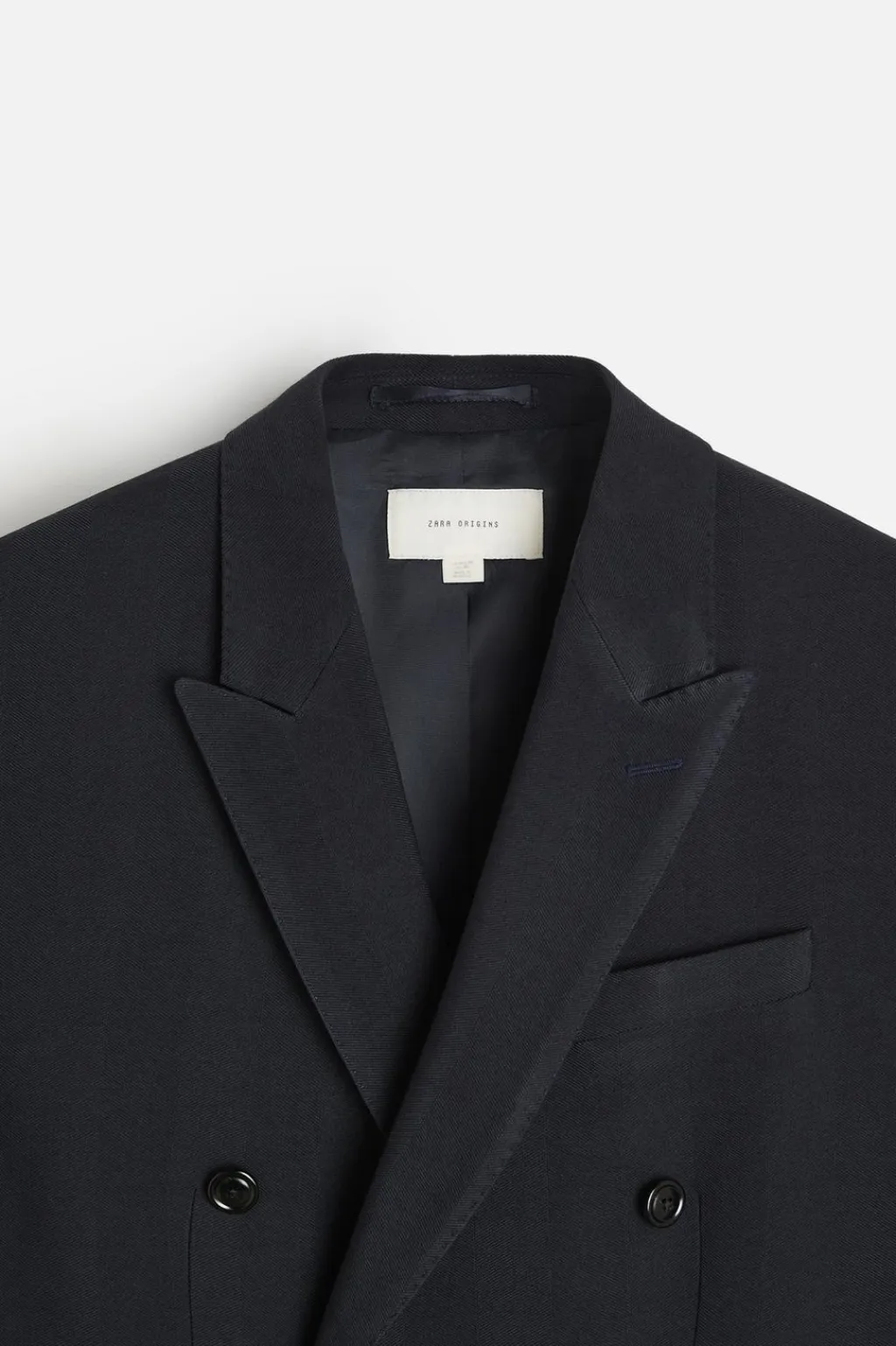 Cuello con solapas de pico y manga larga acabada en puño con botones. Bolsillos de vivo en pecho y de solapa en cadera. Detalle de bolsillo interior. Bajo con abertura en centro espalda. Cierre frontal de botonadura cruzada.