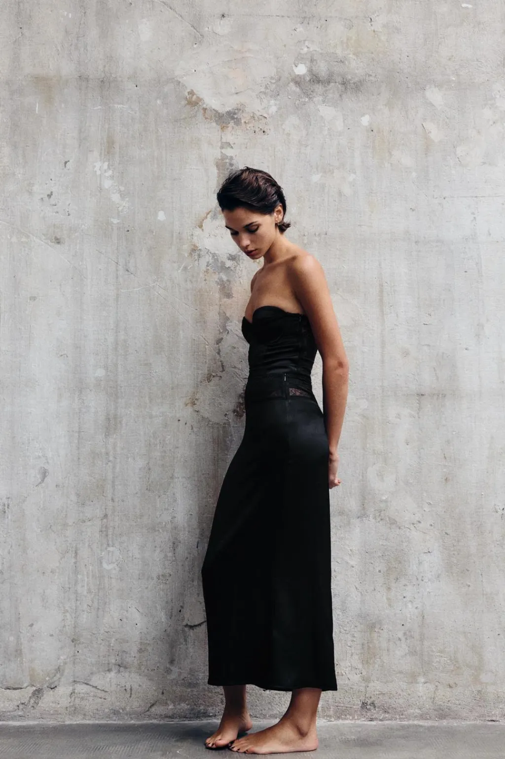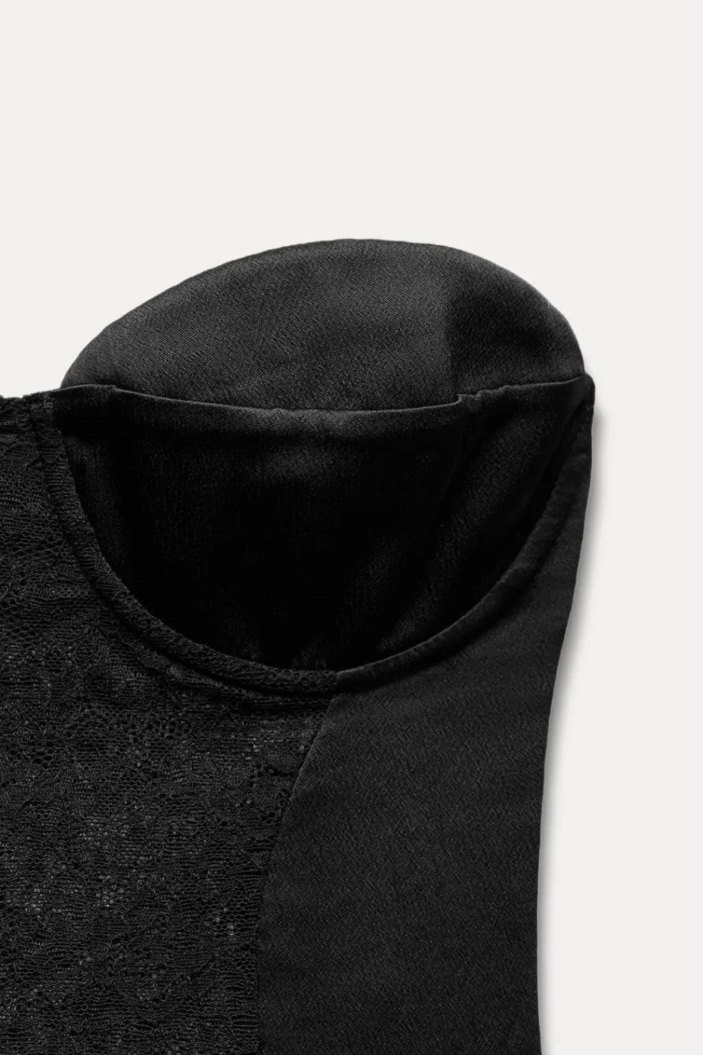 Body palabra de honor con escote corazón. Detalle de combinación de tejidos a tono. Cierre en bajo con botones a presión.