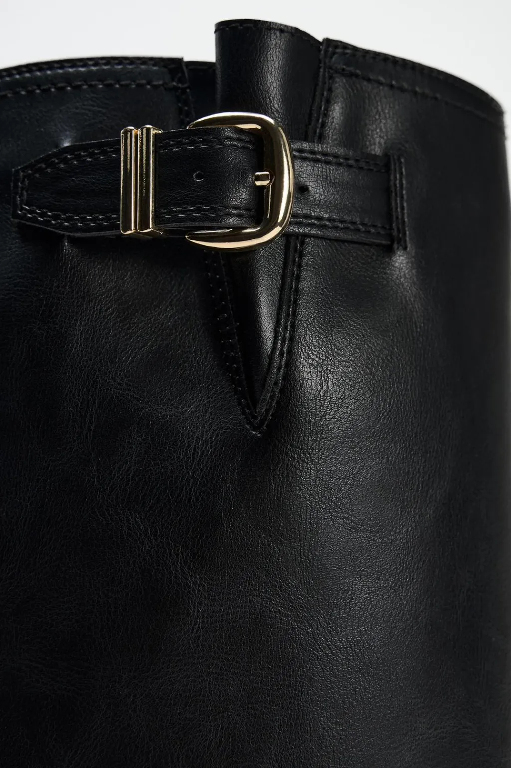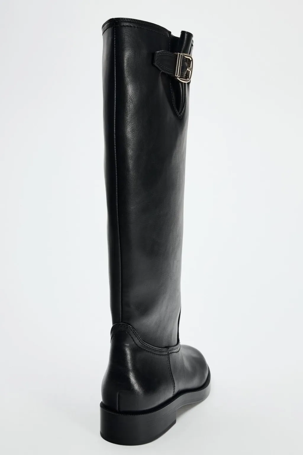 Zapato tipo bota alta. Detalle de hebilla en la caña. Acabada en punta redonda.