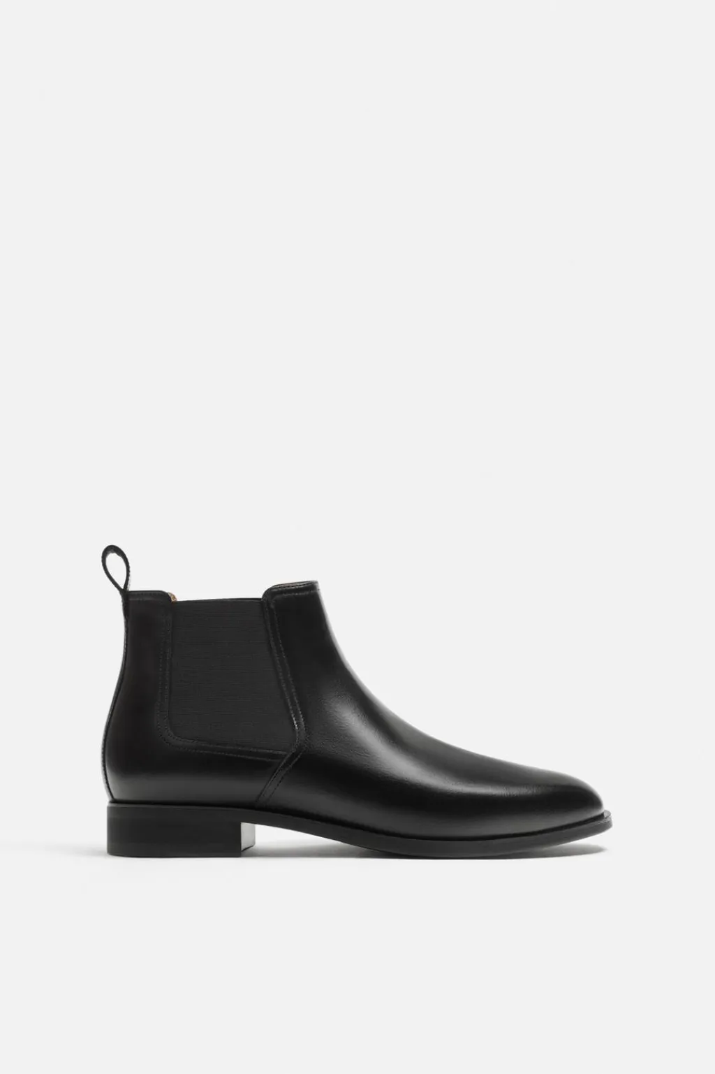 Bota tipo chelsea. Parte superior fabricada en piel. Cuenta con dos piezas elásticas laterales y tirador trasero para facilitar el calce. Horma en punta.
