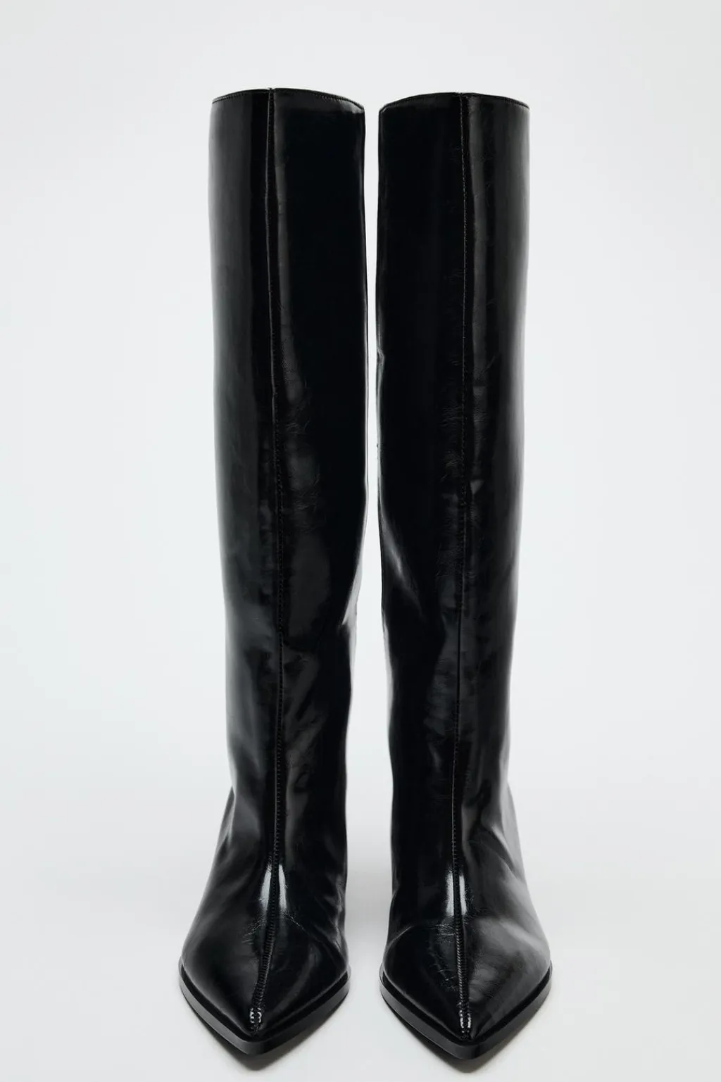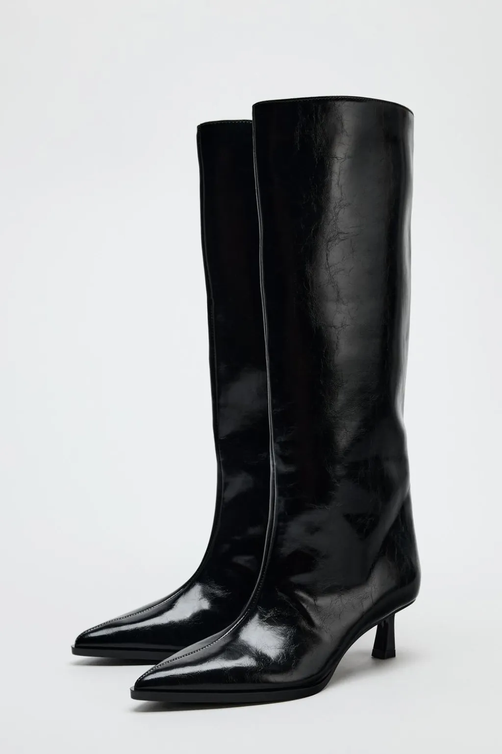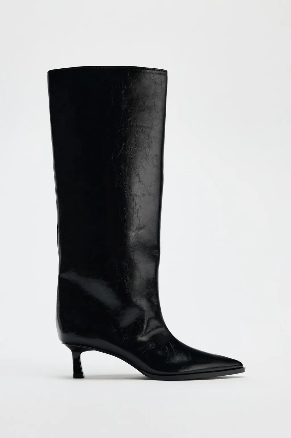 Zapato tipo bota de caña ancha. Tacón kitten. Acabado en punta.