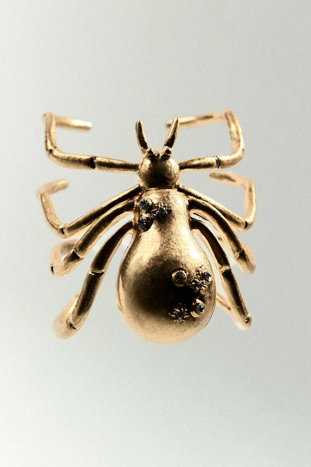 Brazalete metálico en forma de araña. Detalle aplicación de joyas.