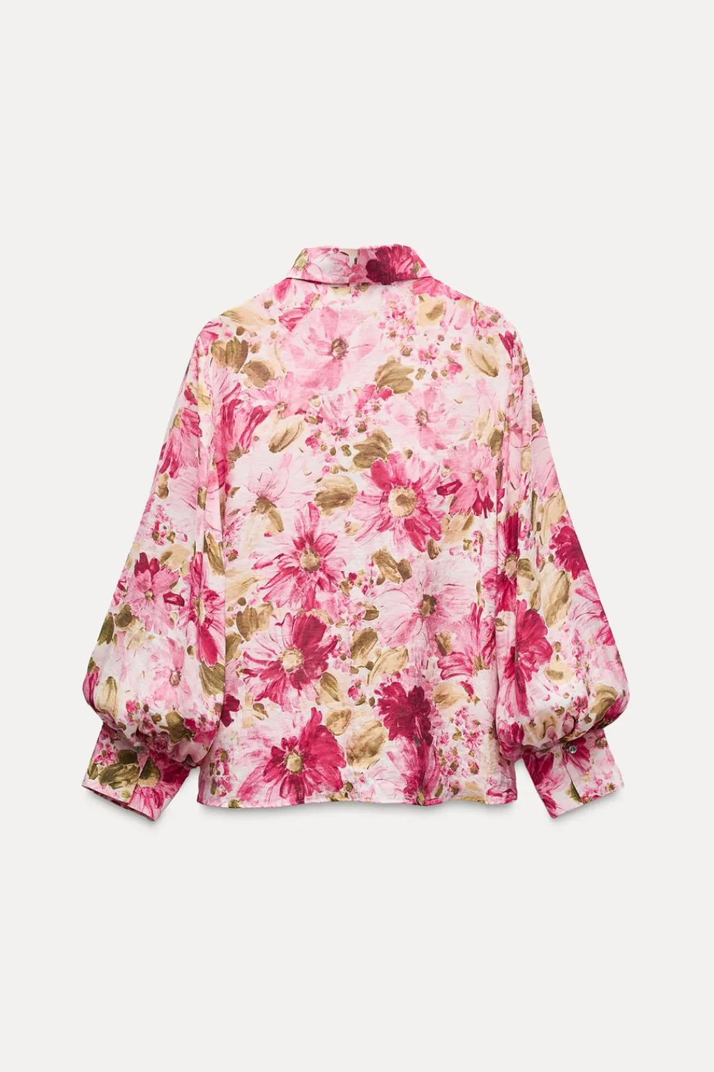 Camisa fluida de cuello solapa y manga larga. Cierre frontal con botones.