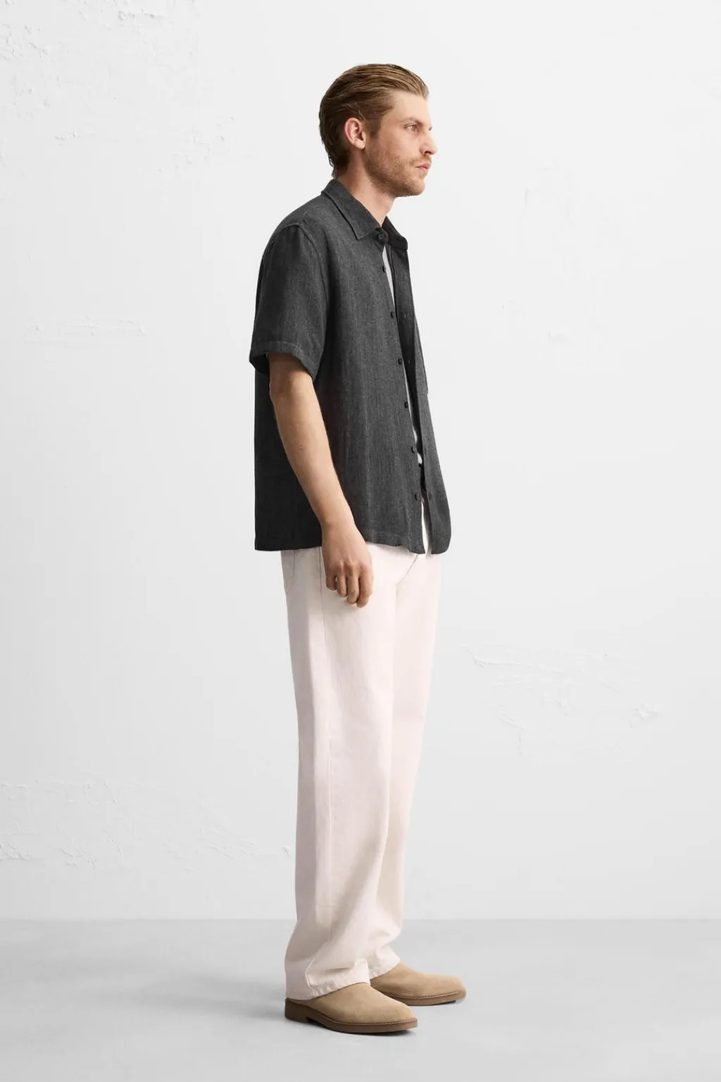 Camisa relaxed fit confeccionada en tejido doble con interior combinado a contraste. Cuello solapa y manga corta. Bajo con aberturas laterales. Cierre frontal de botonadura.