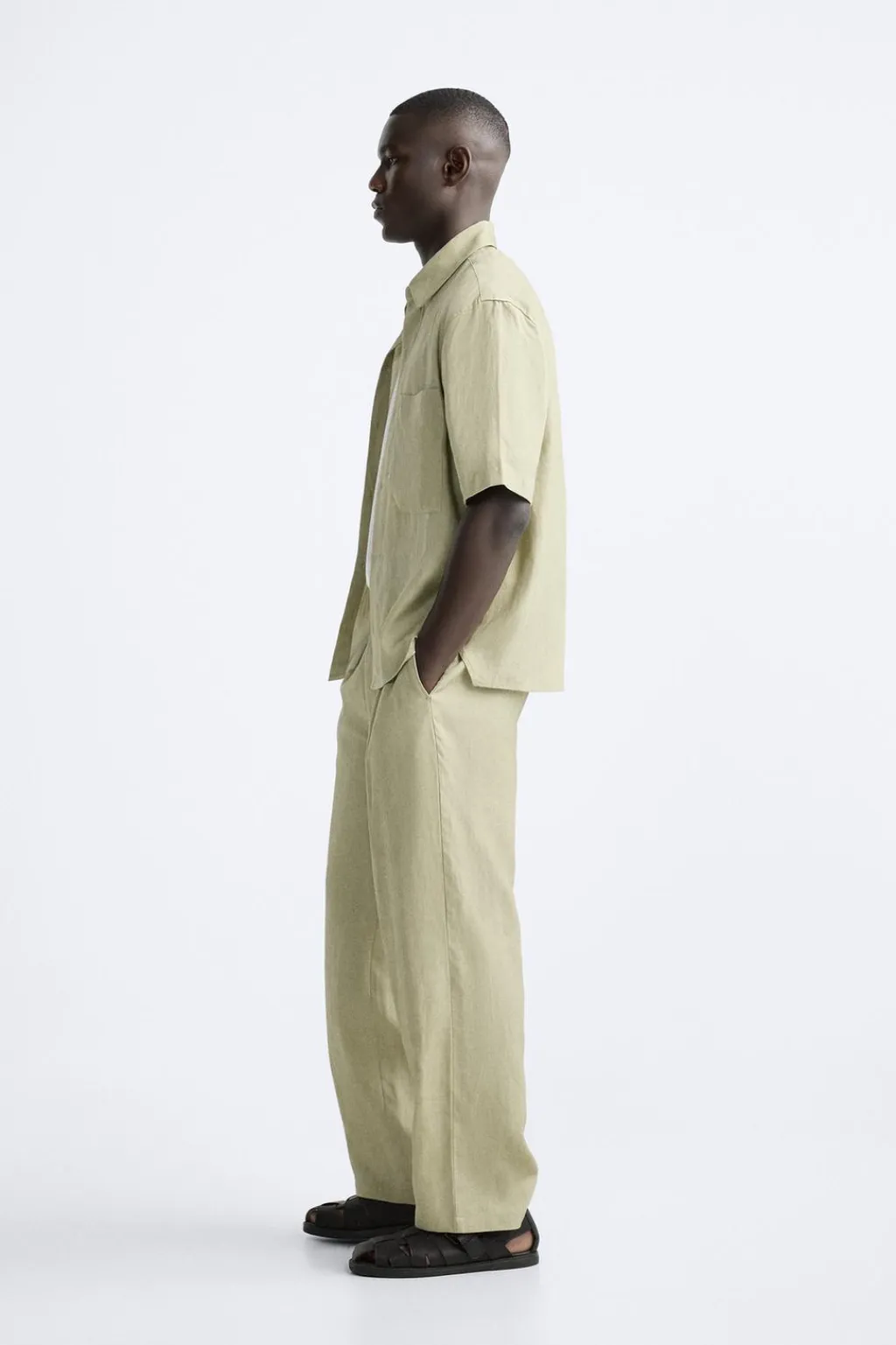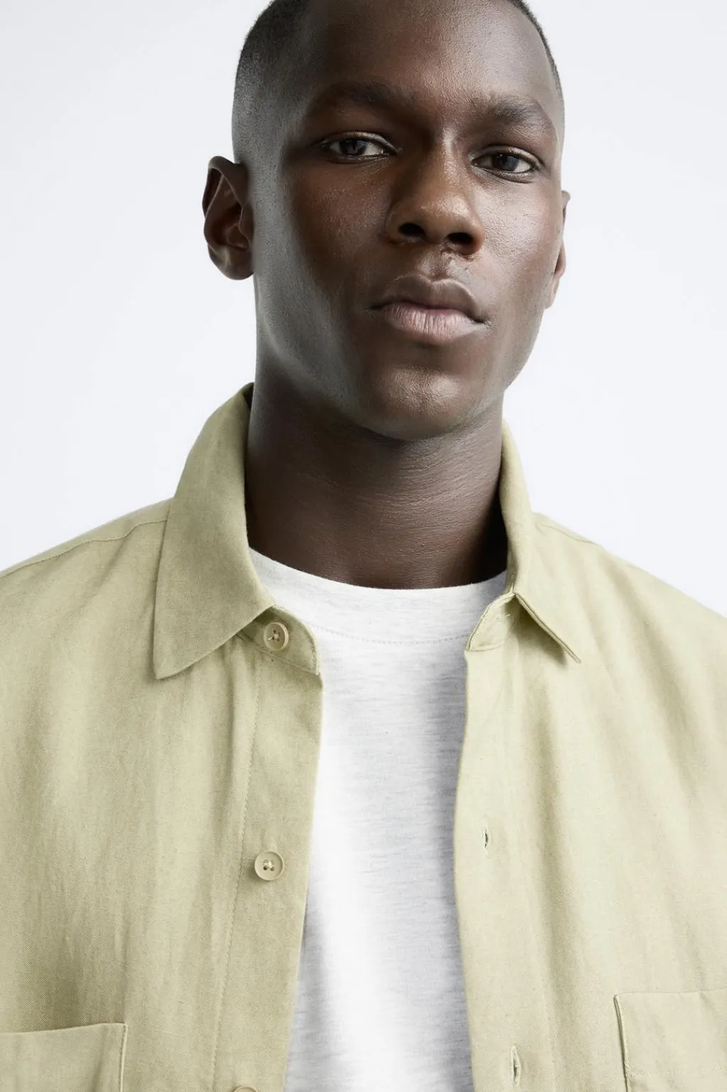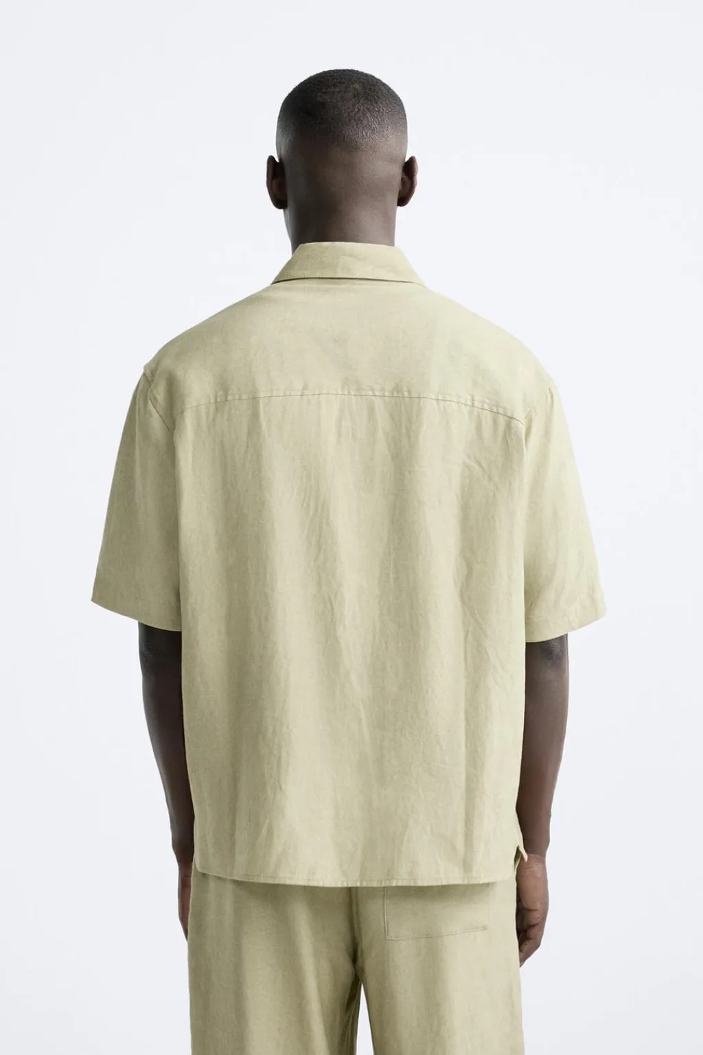 Camisa relaxed fit confeccionada en tejido con mezcla de lyocell y lino. Cuello solapa y manga corta. Bolsillos de plastrón en delantero. Lavado con efecto arrugado. Bajo con aberturas laterales. Cierre frontal de botonadura.