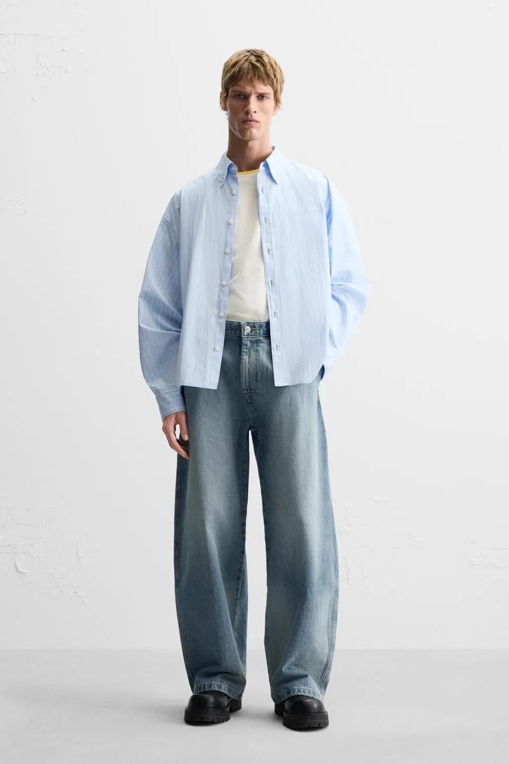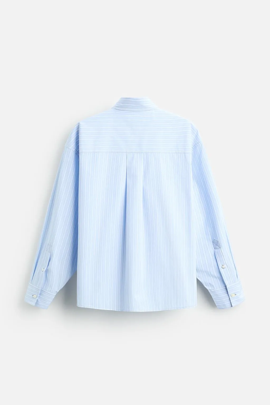 Camisa relaxed fit confeccionada en tejido de algodón. Cuello solapa y manga larga acabada en puño con botón. Detalle de pespuntes combinados a contraste. Cierre frontal de botonadura.