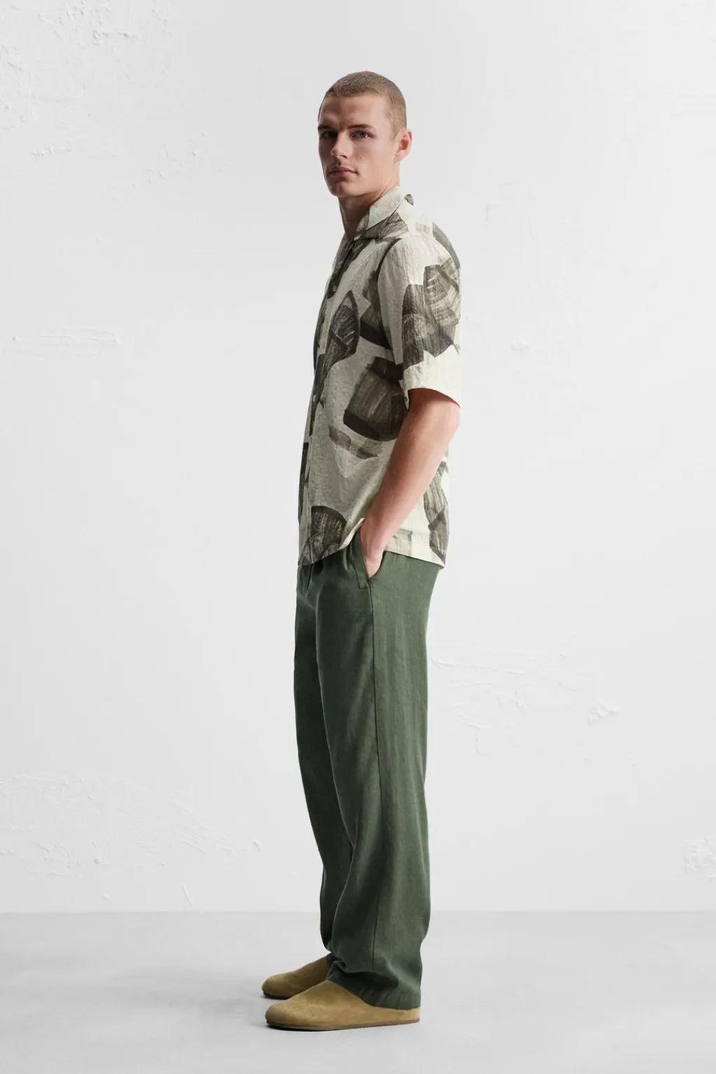 Camisa relaxed fit. Cuello bowling y manga corta. Bajo con aberturas laterales. Cierre frontal de botonadura.