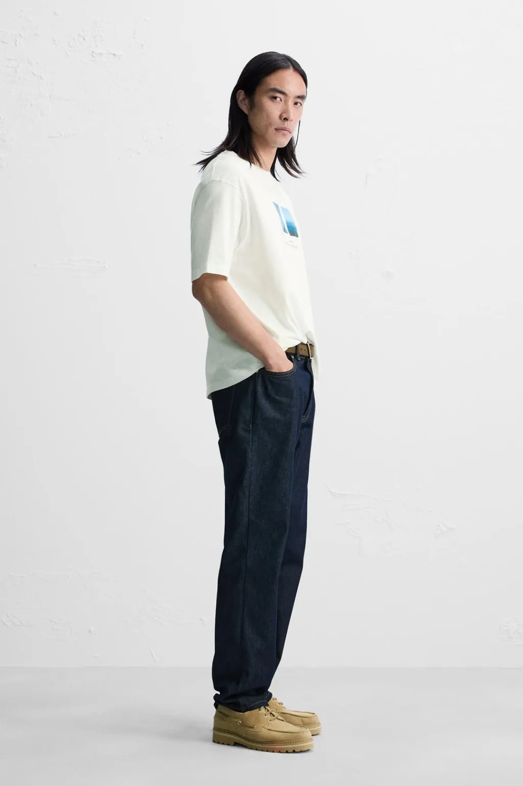 Camiseta relaxed fit. Cuello redondo y manga corta. Estampación fotográfica combinada a contraste en delantero.