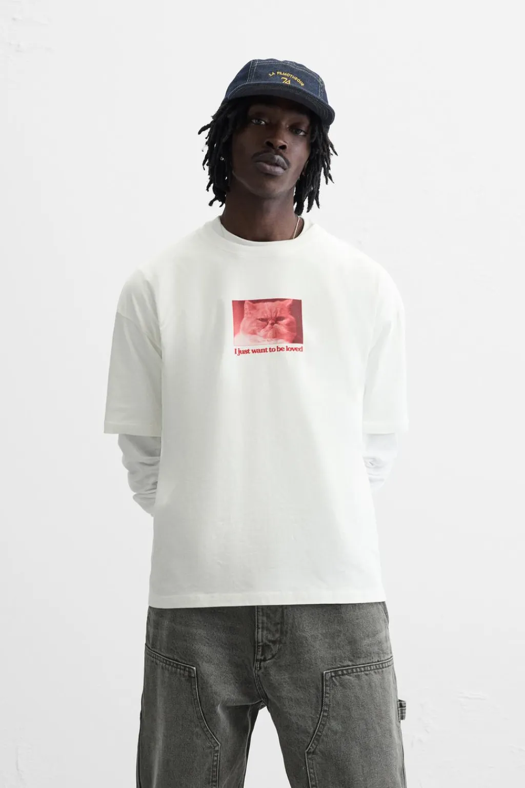 Camiseta relaxed fit. Cuello redondo y manga corta. Estampaciones combinadas a contraste en delantero y espalda.