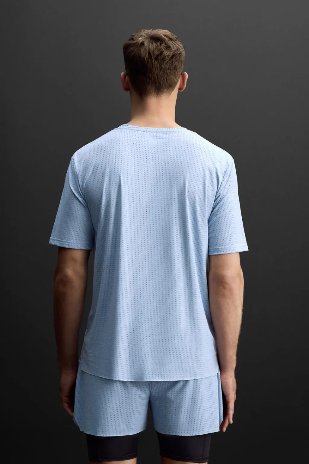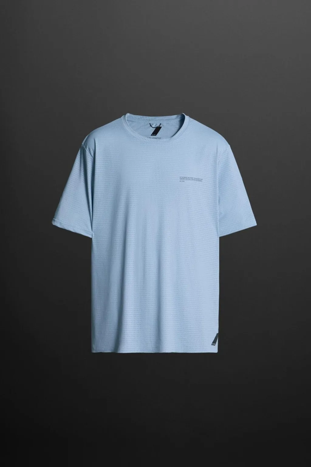 Camiseta confeccionada en tejido técnico perforado, ligero y elástico.