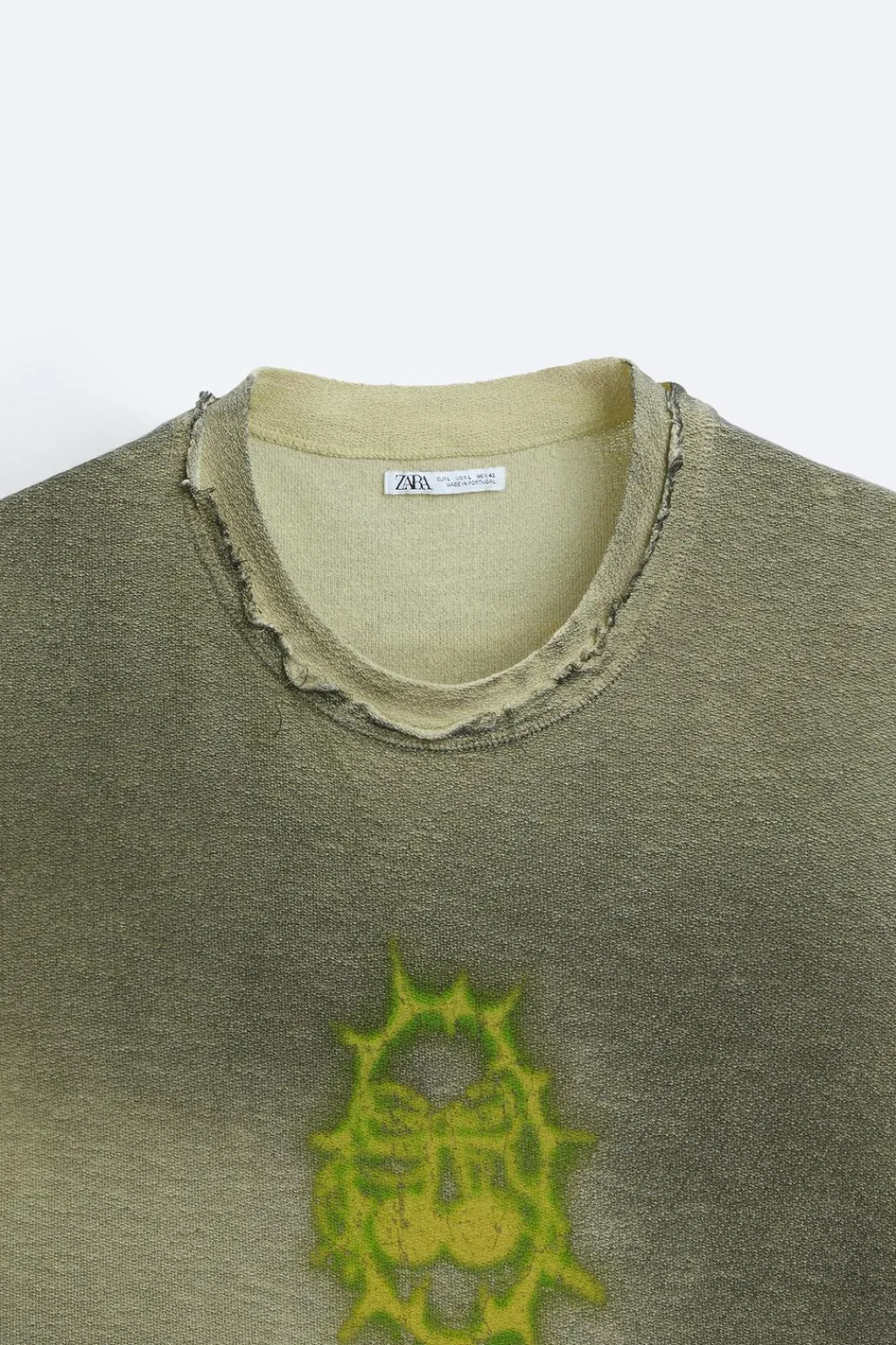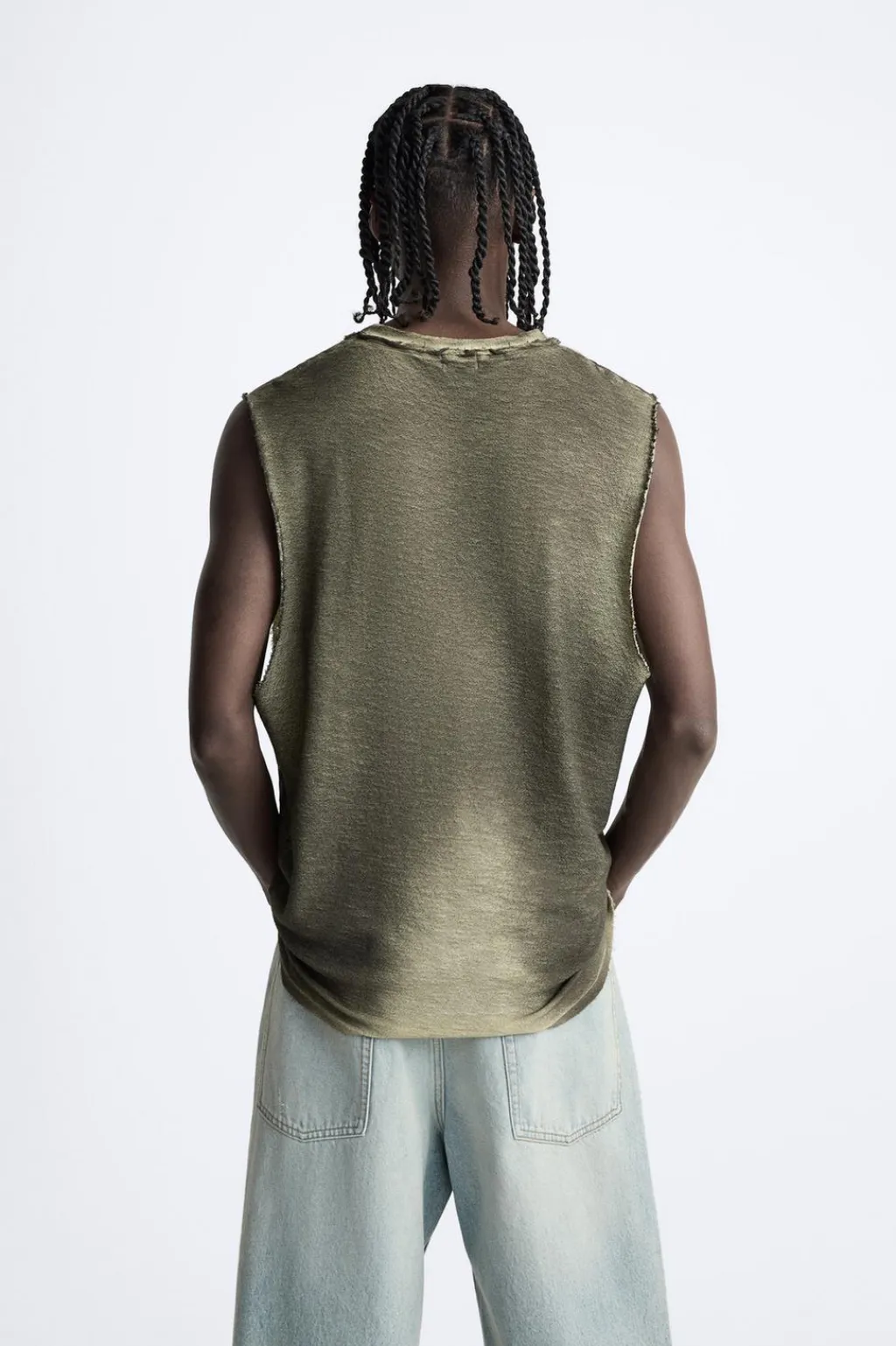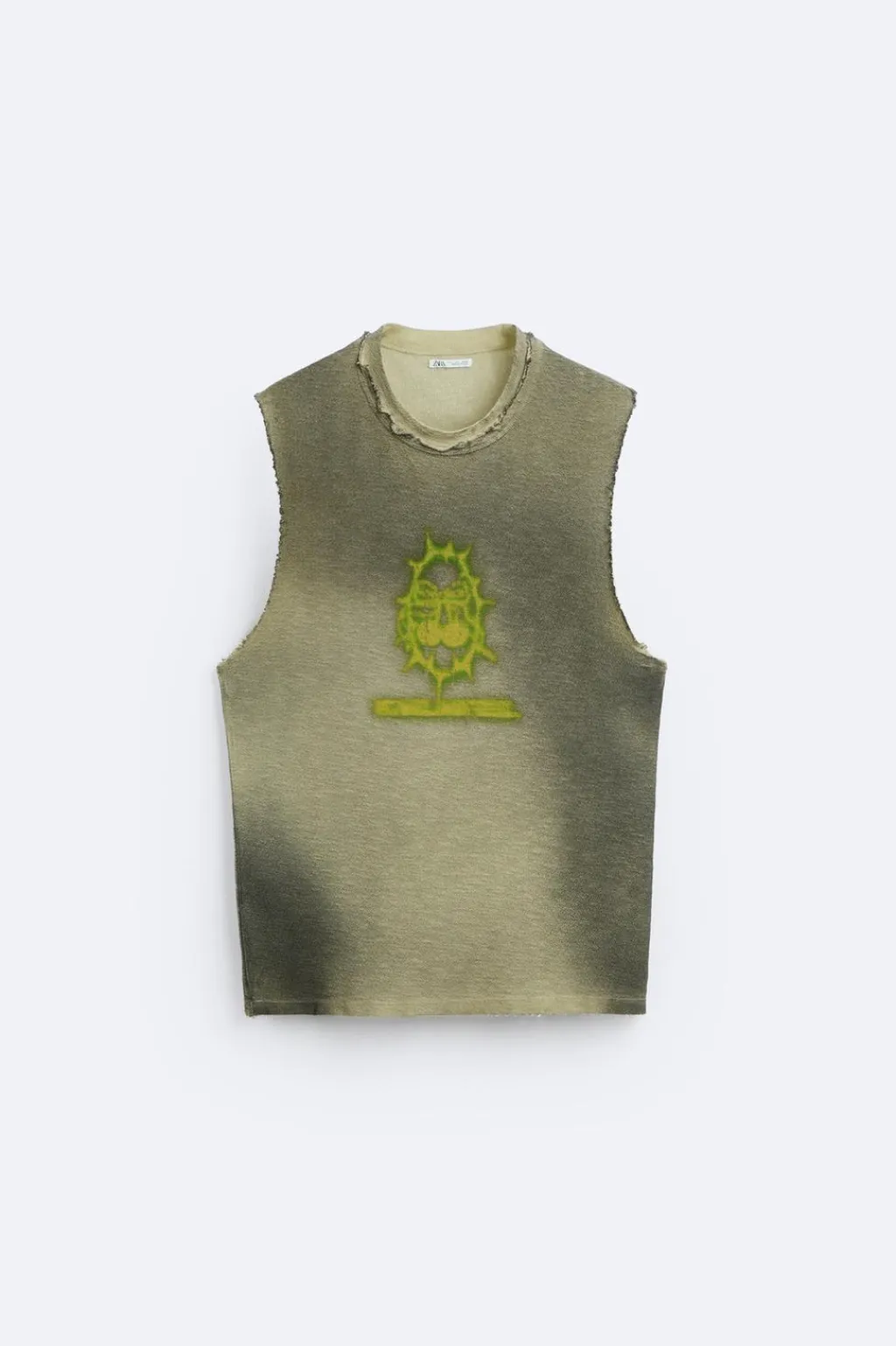Camiseta relaxed fit tejida en hilatura de algodón. Cuello redondo y manga sisa. Estampado combinado a contraste en delantero. Acabados irregulares.