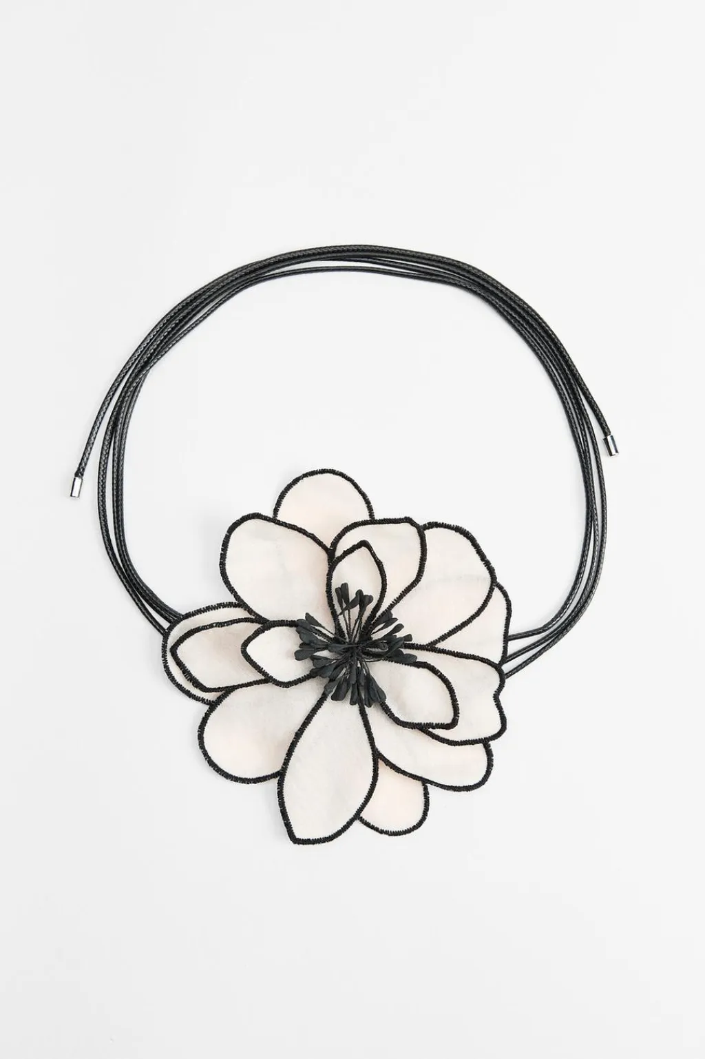 Collar de cordón con flor combinada en tejido.