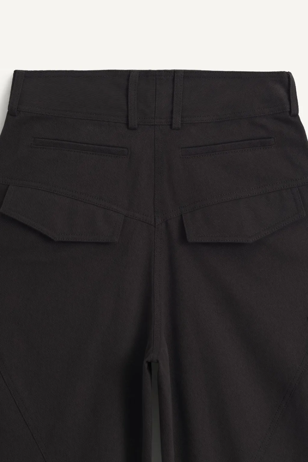 Pantalón confeccionado en hilatura de algodón. Tiro medio y cintura con trabillas. Bolsillos delanteros, de plastrón en pierna y con solapa en espalda. Bajo acabado en vuelta. Cierre frontal con cremallera y botones.
