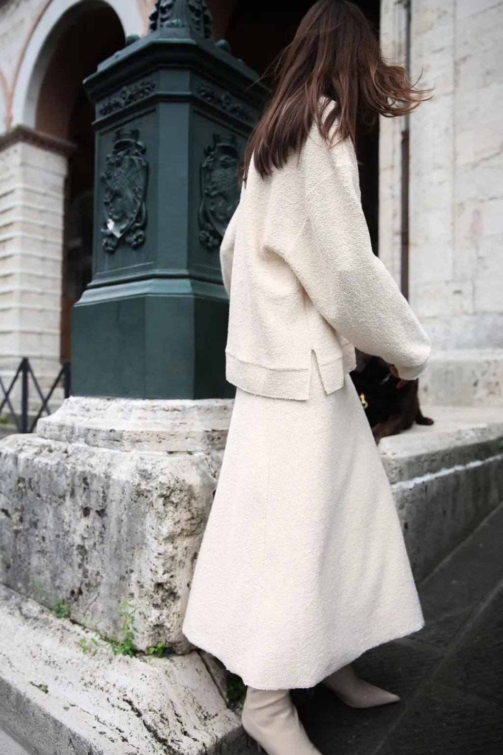 Falda midi de tiro alto y cintura con elástico. Bajo acabado en línea evasé.