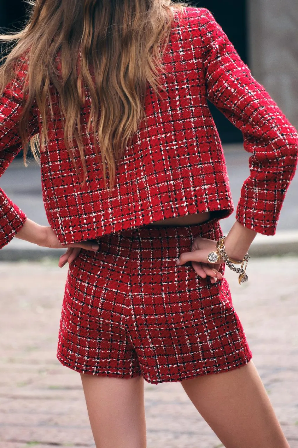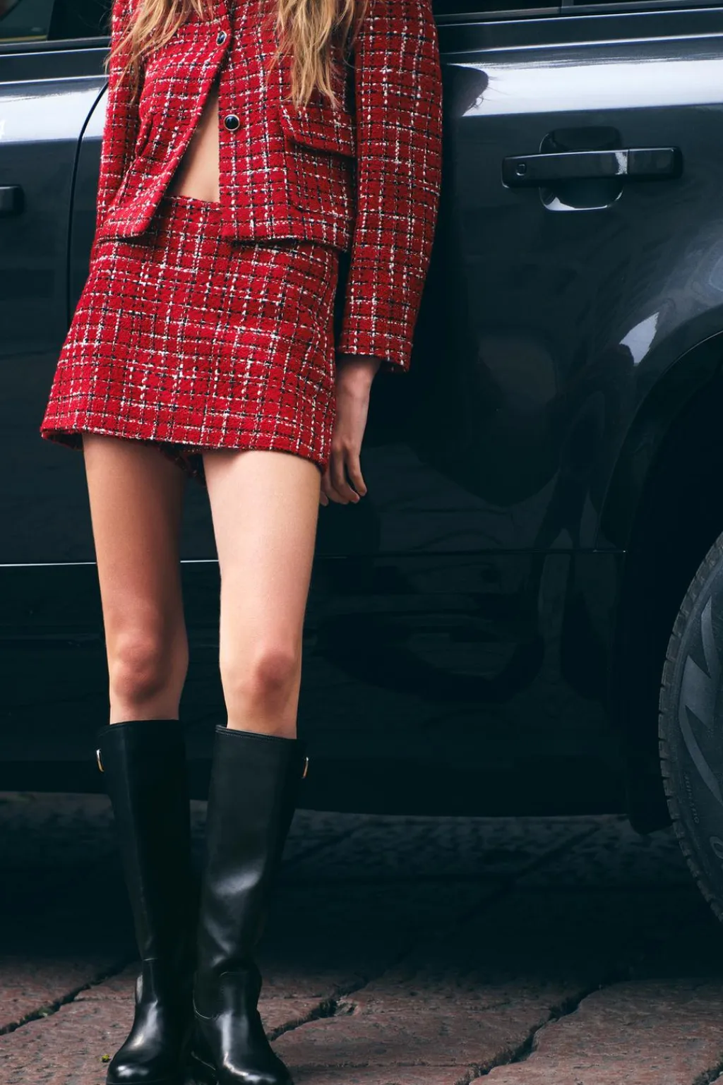 Falda pantalón de tiro alto. Cierre lateral con cremallera oculta en costura.