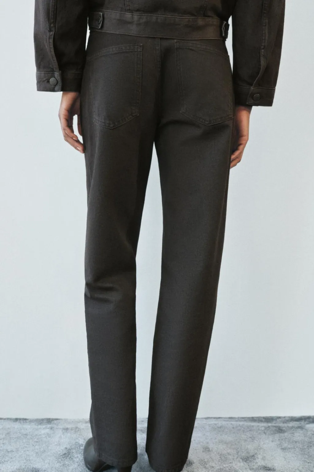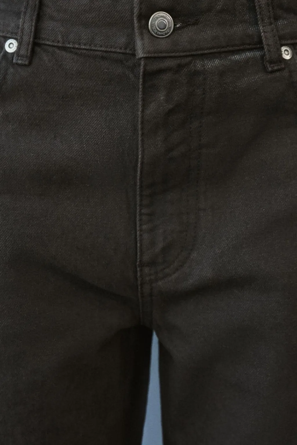 Jeans de tiro medio y cintura con trabillas. Cinco bolsillos. Pierna recta. Cierre frontal con cremallera y botón.