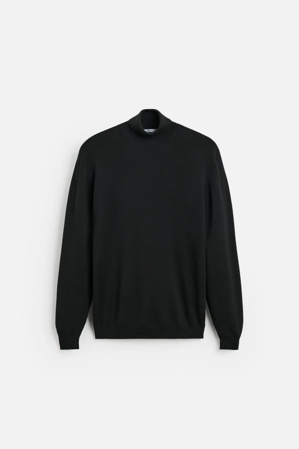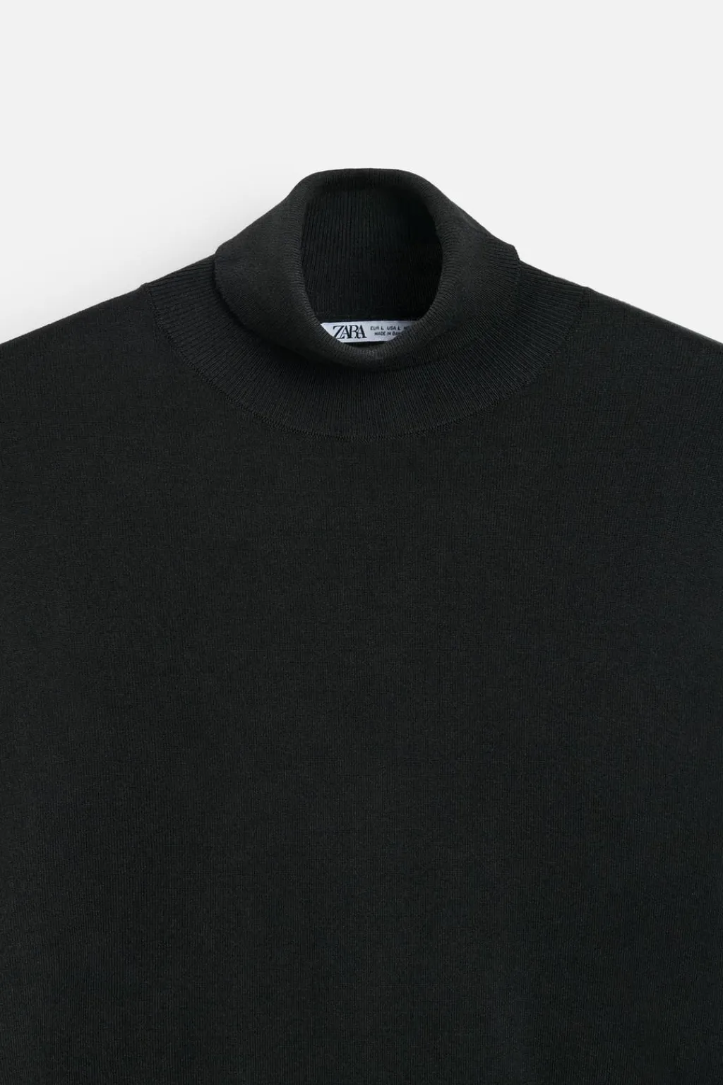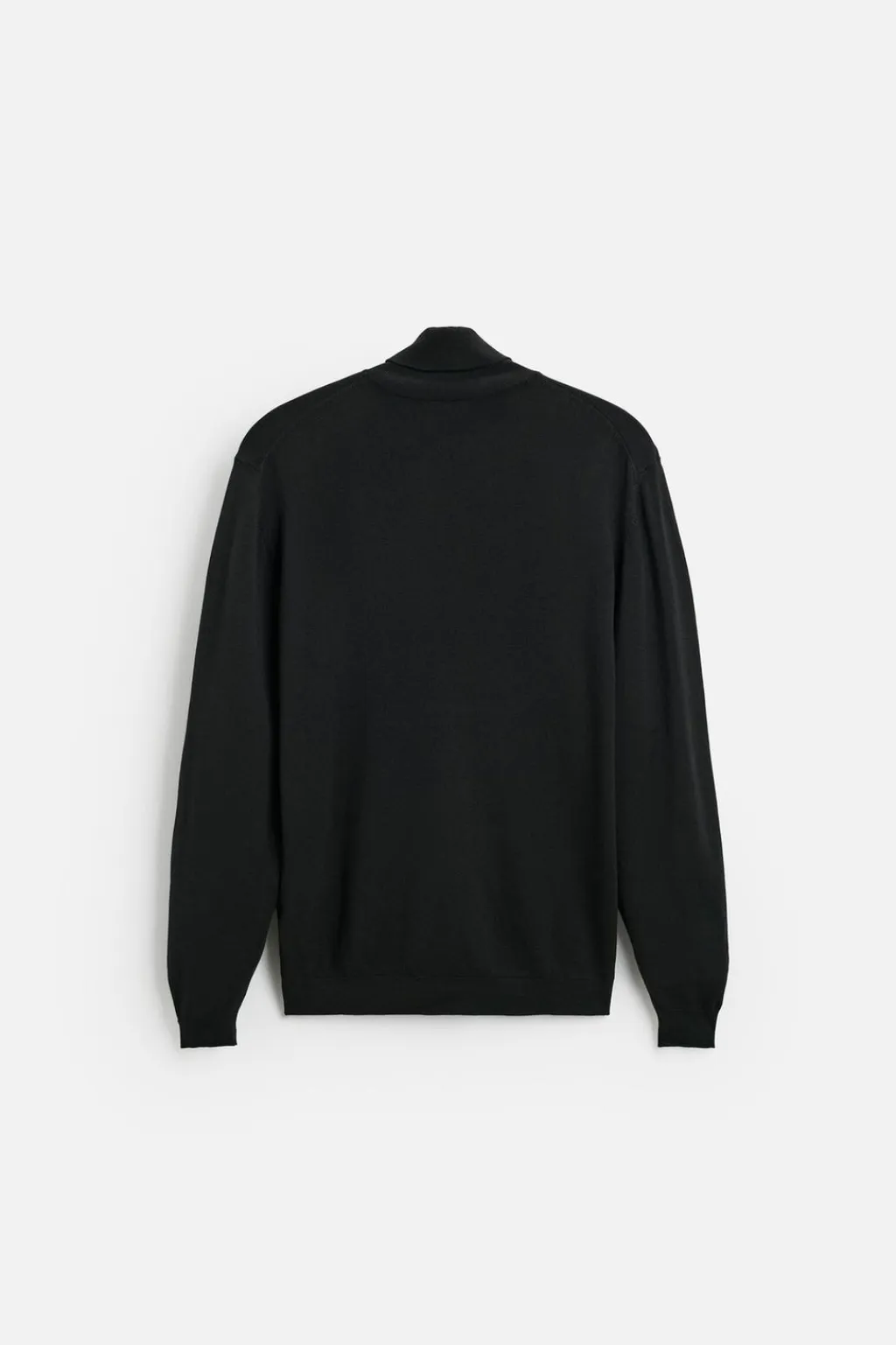 Jersey tejido en hilatura con mezcla de viscosa.Cuello subido y manga larga. Acabados en rib.
