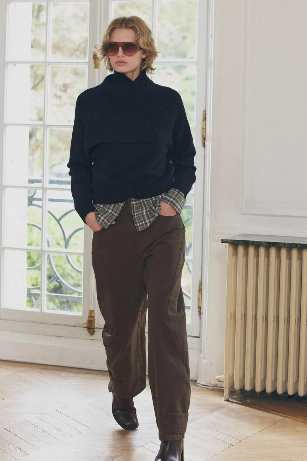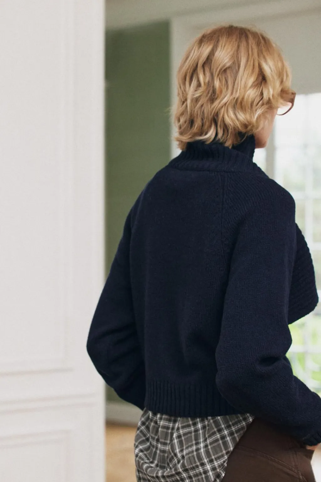 Jersey de cuello subido y manga larga. Acabados en rib.