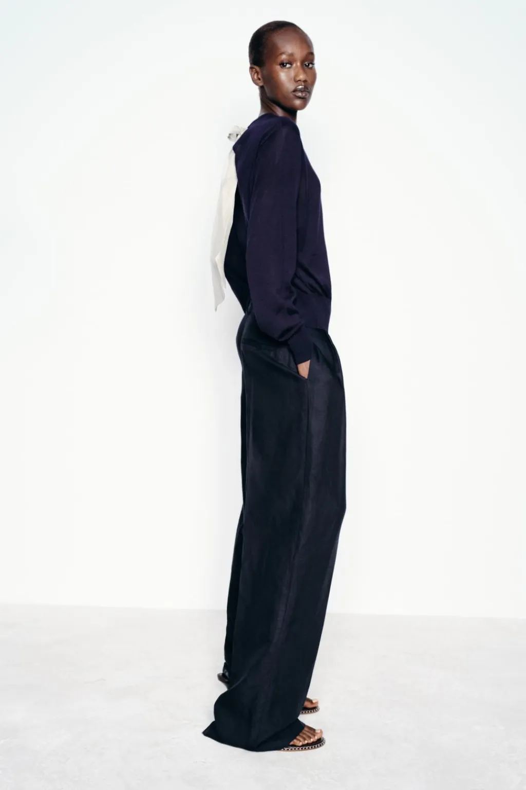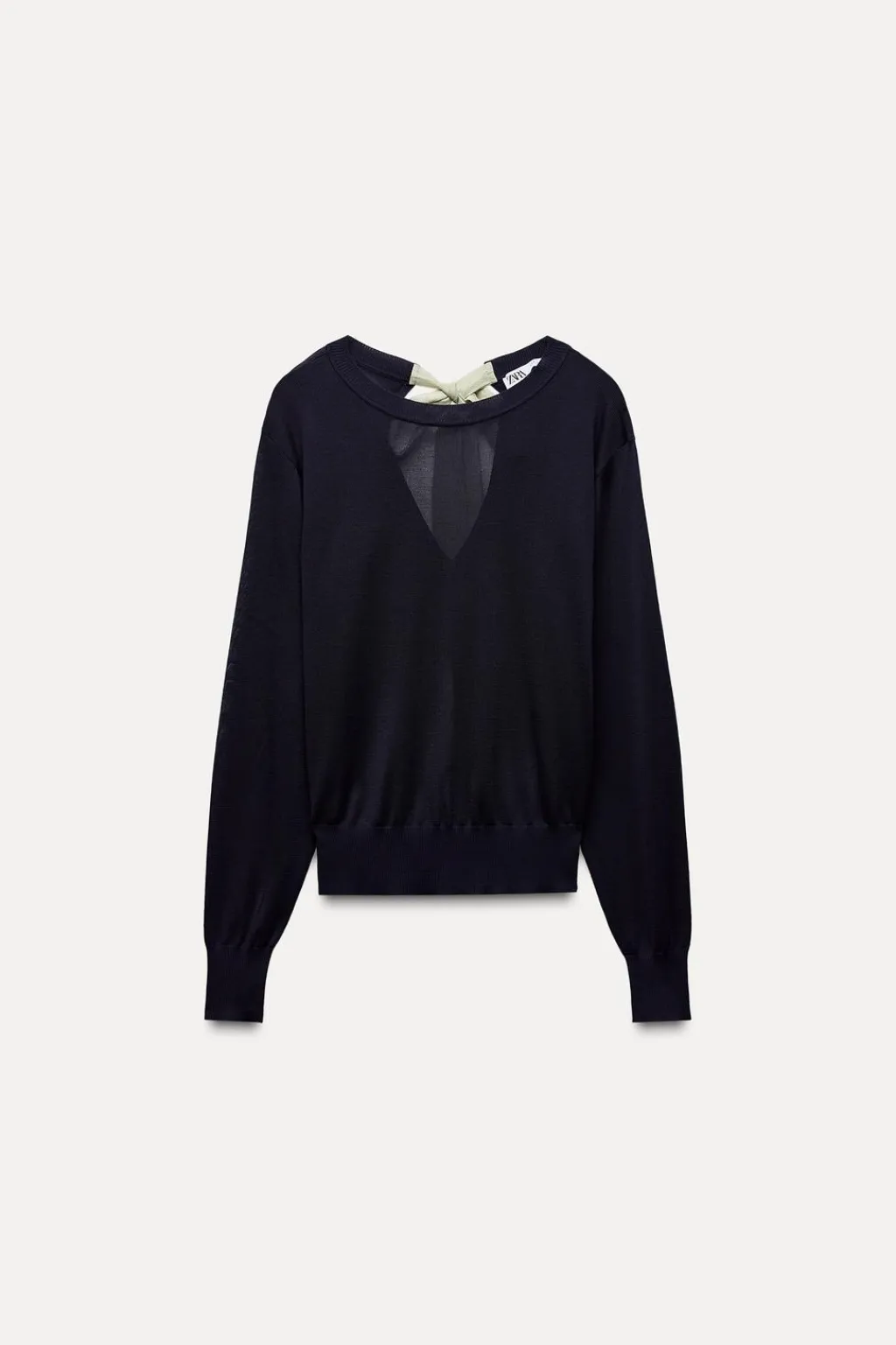 Jersey de cuello redondo y manga larga. Detalle de aberturas en espalda con lazo combinado a contraste.