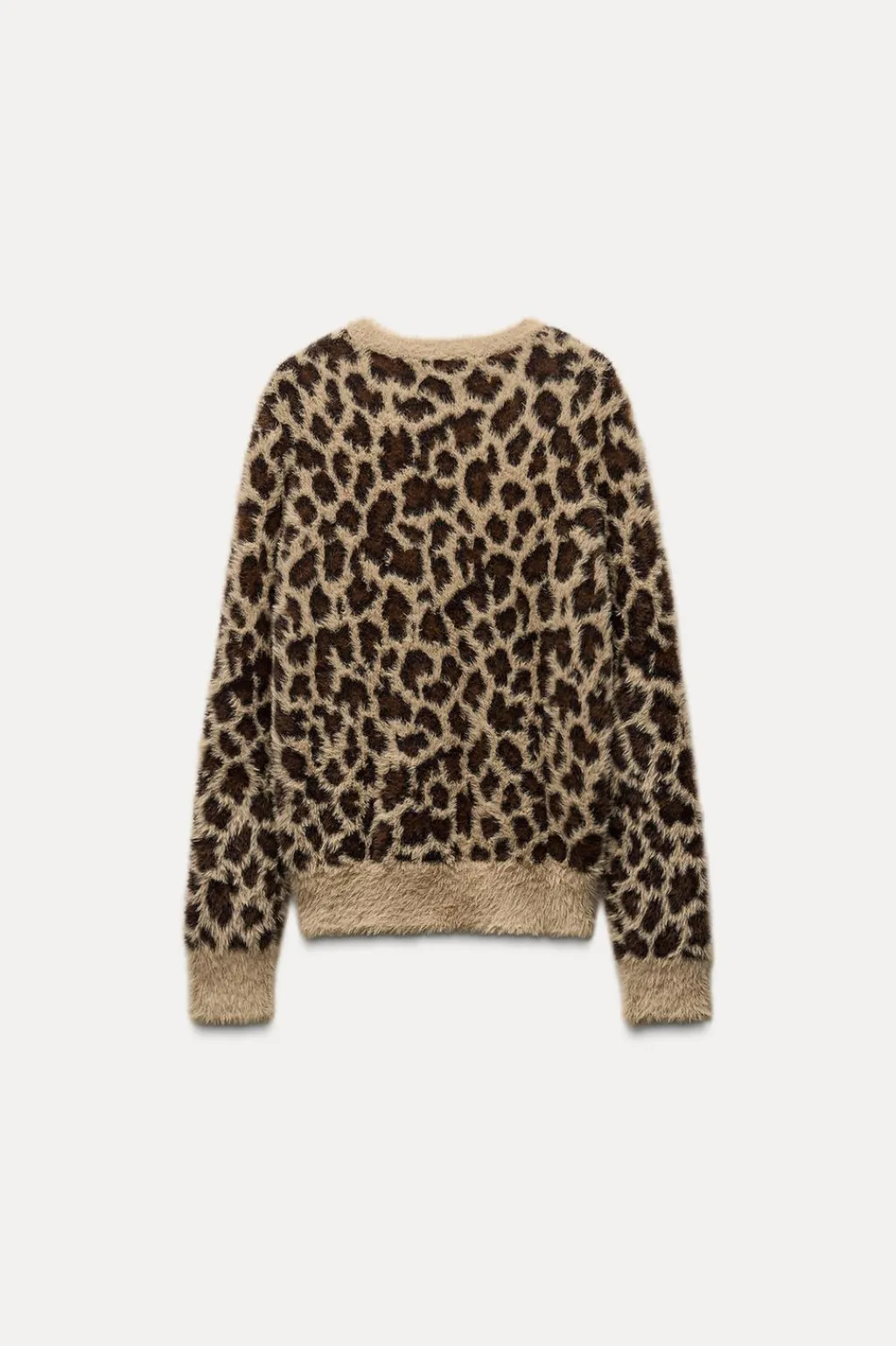 Jersey de cuello barco y manga larga. Detalle de tejido efecto pelo y jacquard animal.