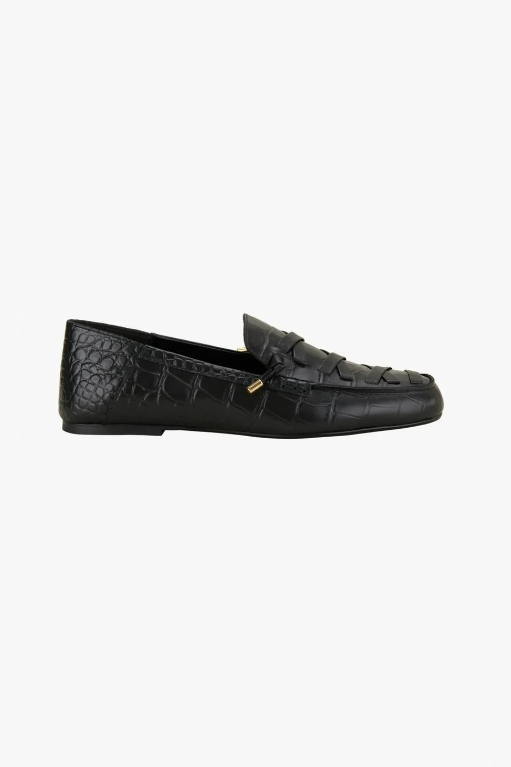 Zapato tipo mocasín en piel. Acordonado en la parte delantera con detalles metálicos. Acabado en punta cuadrada.