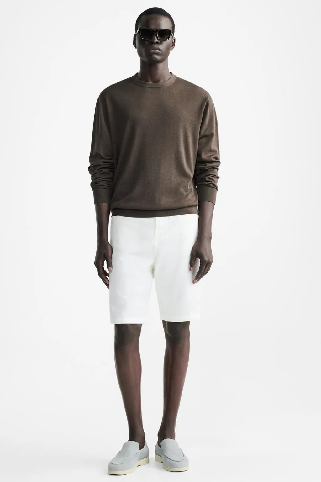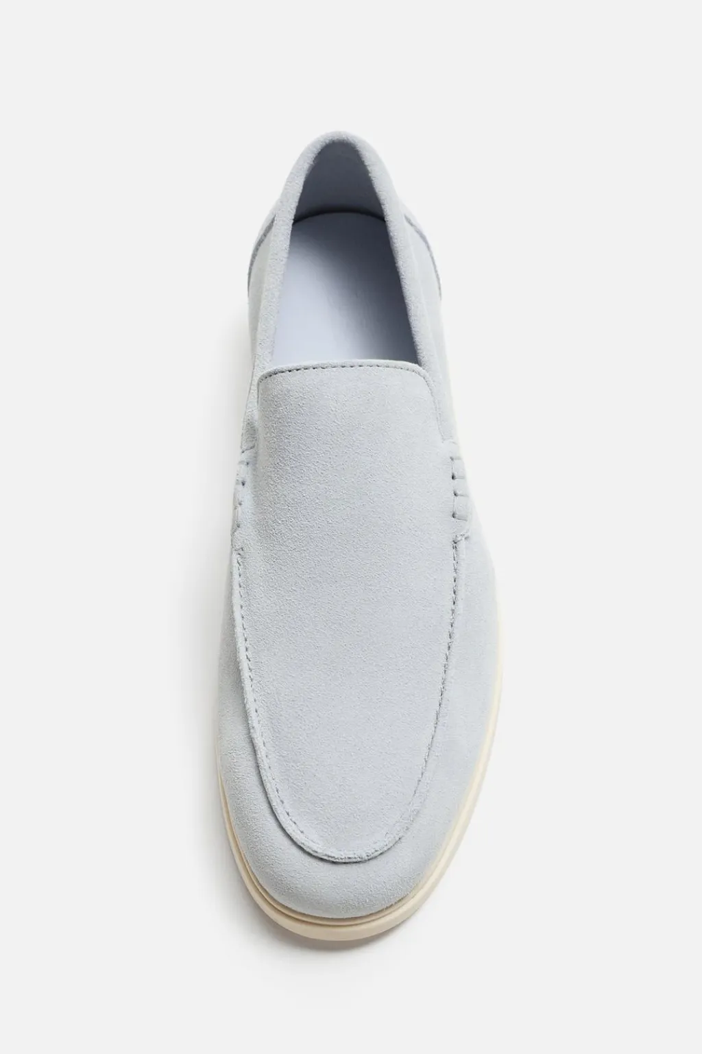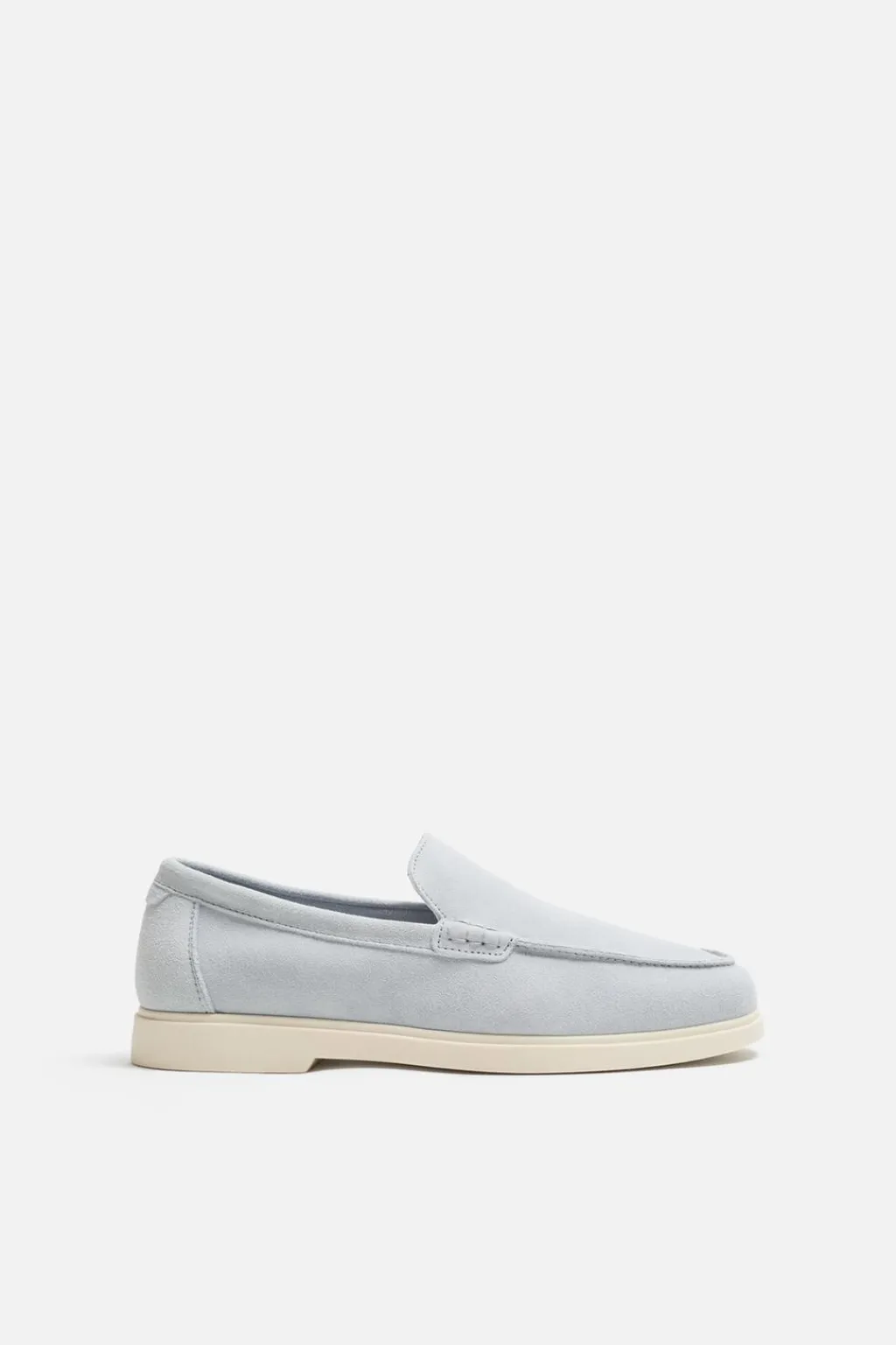 Mocasín casual. Parte superior fabricada en piel con acabado serraje. Corte liso con detalle de bordón. Horma redonda. Suela a contraste.
