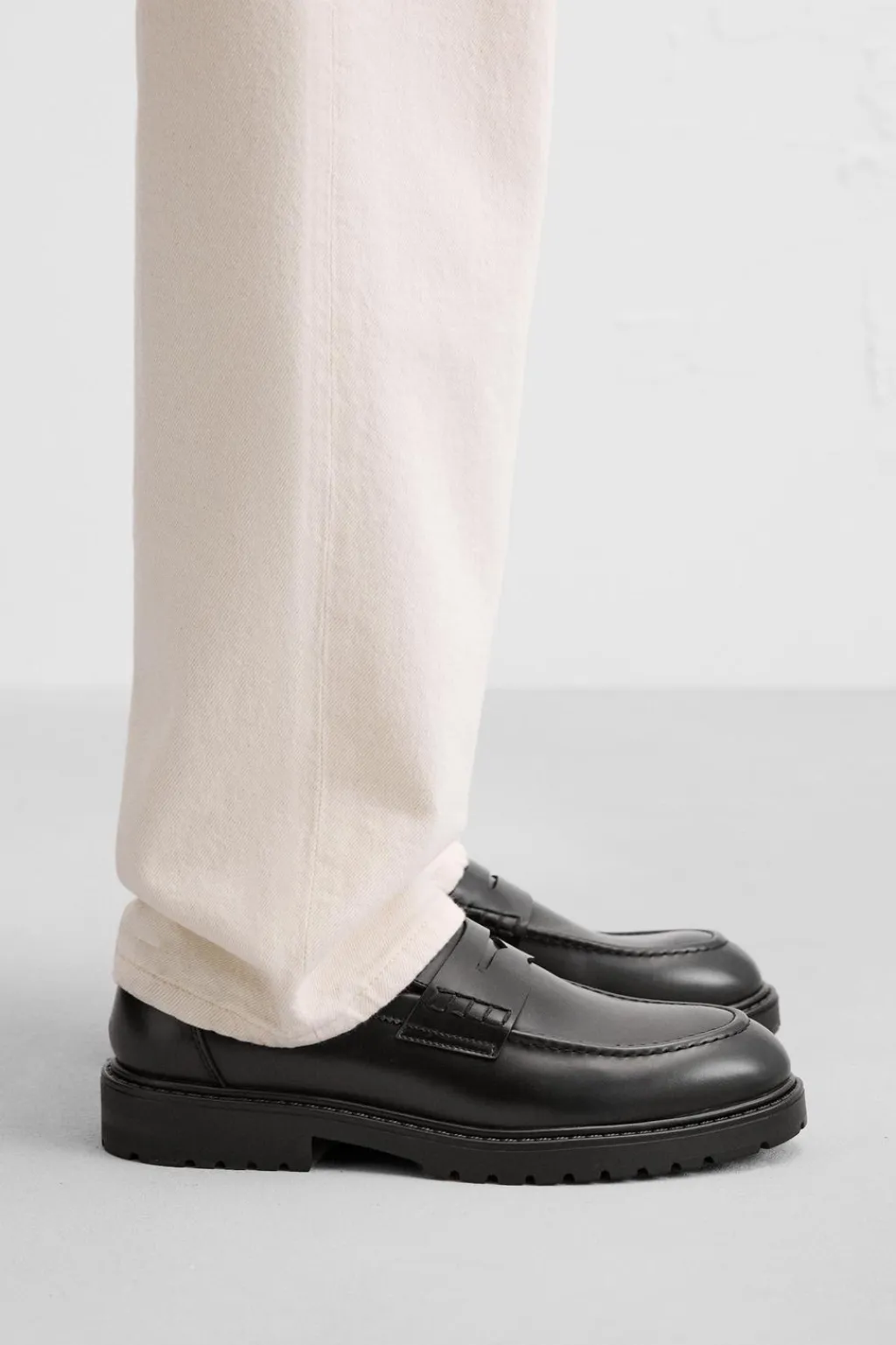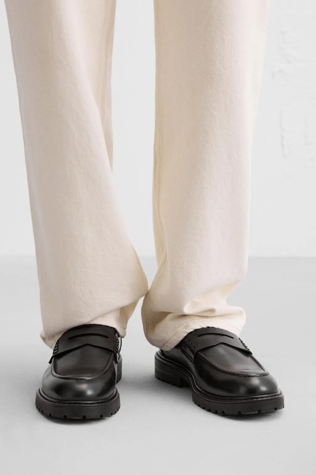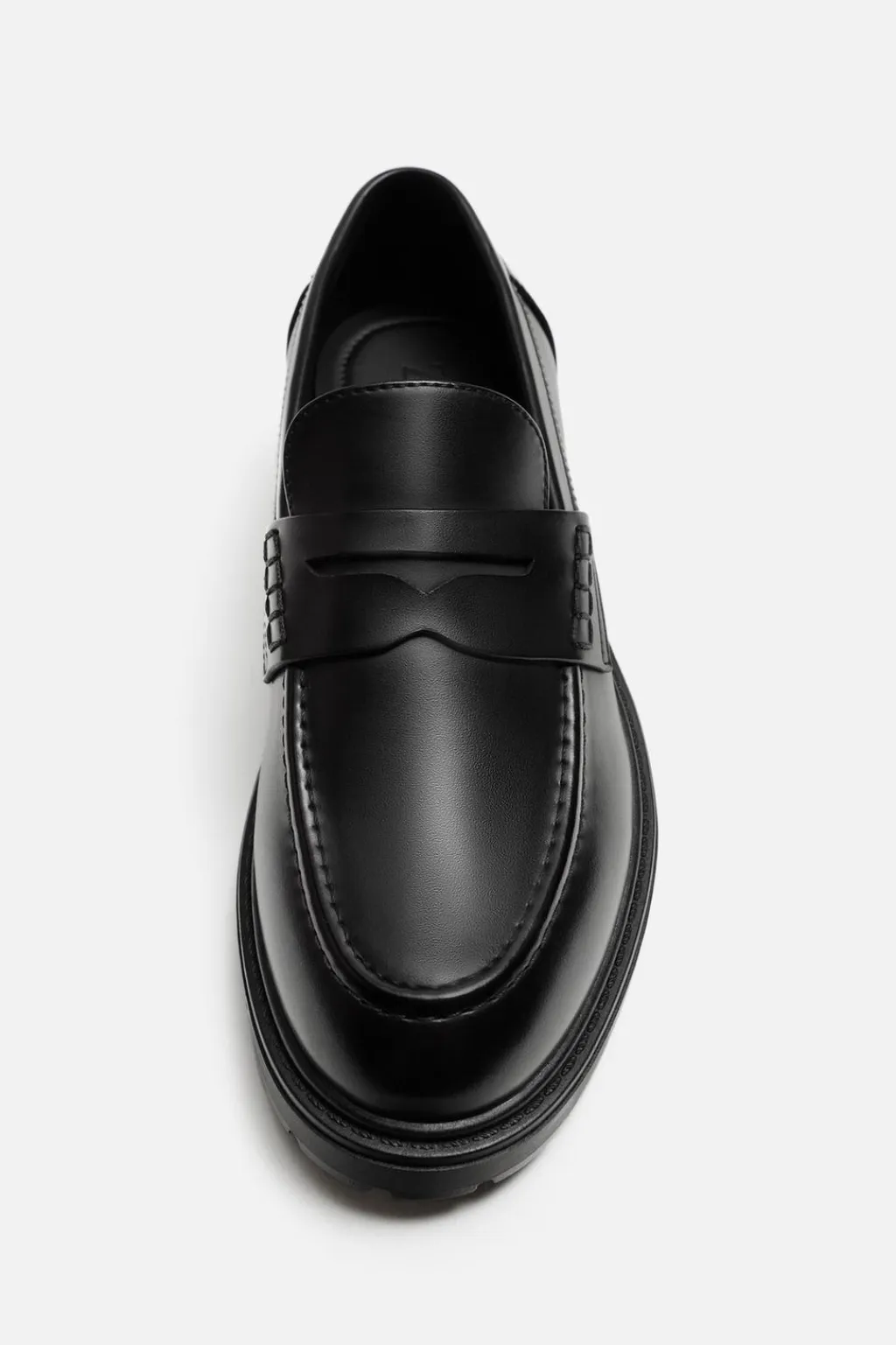 Mocasín de vestir. Parte superior lisa con detalle de antifaz. Forro y plantilla interior a tono. Suela track.
