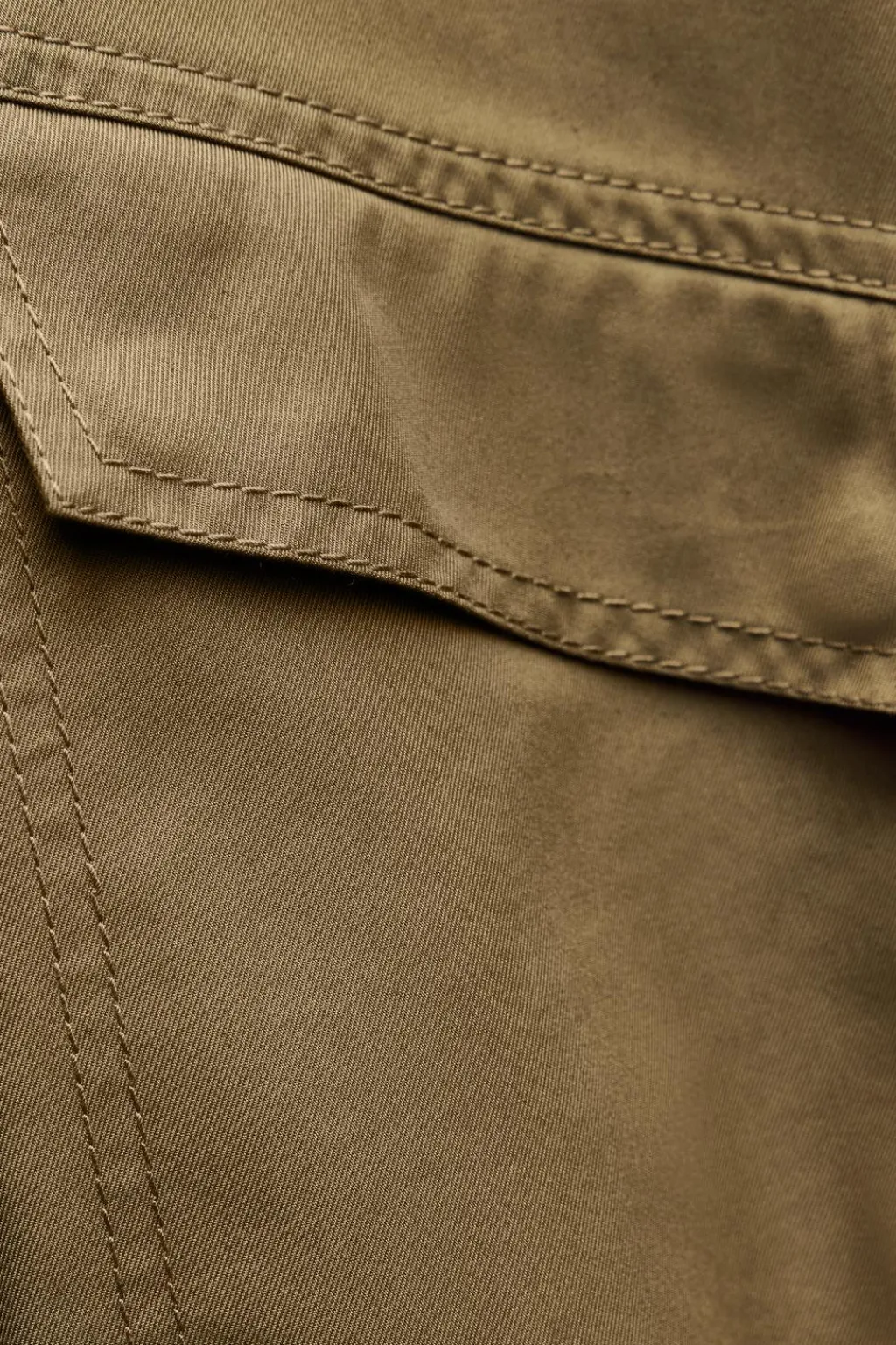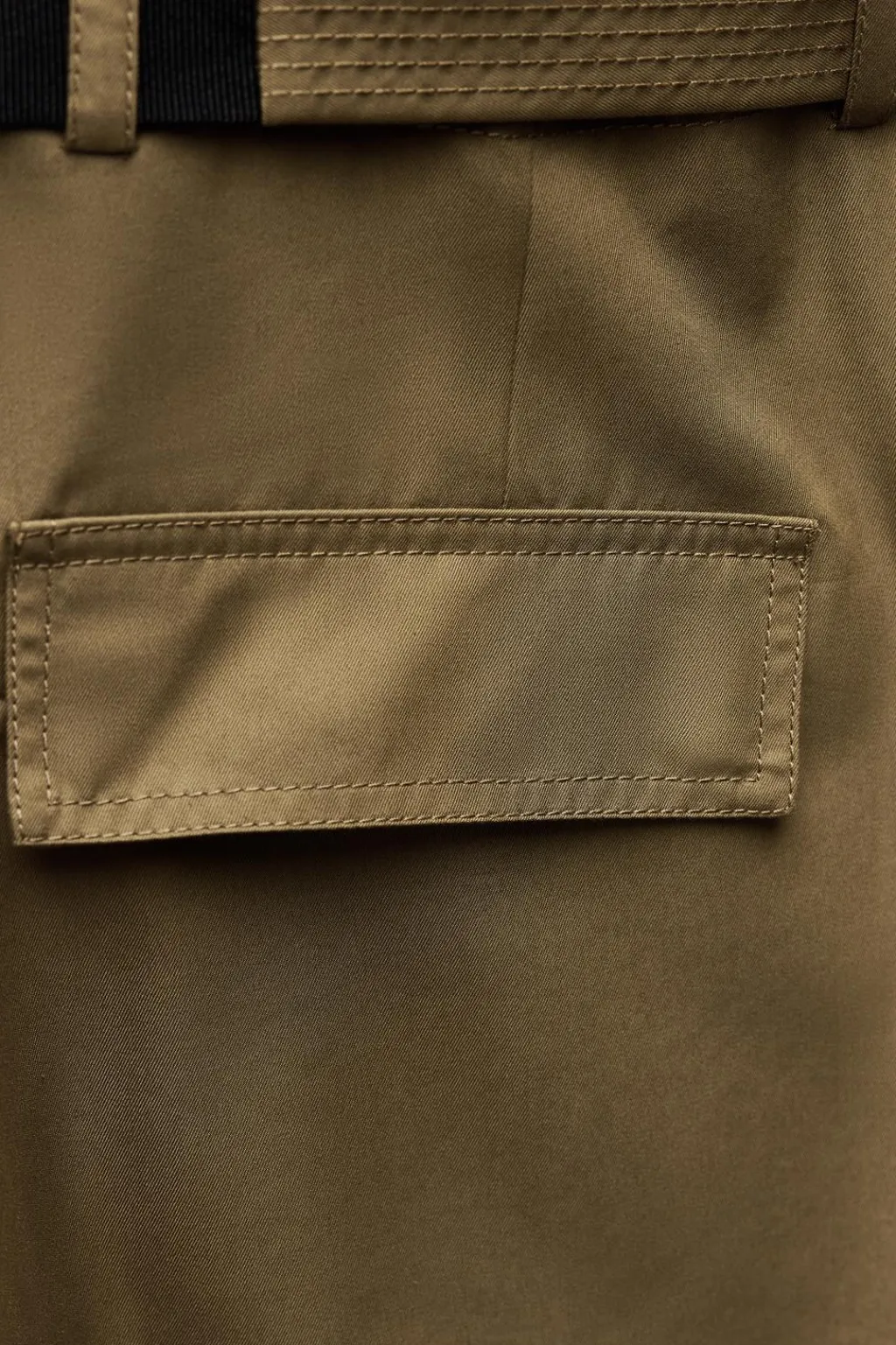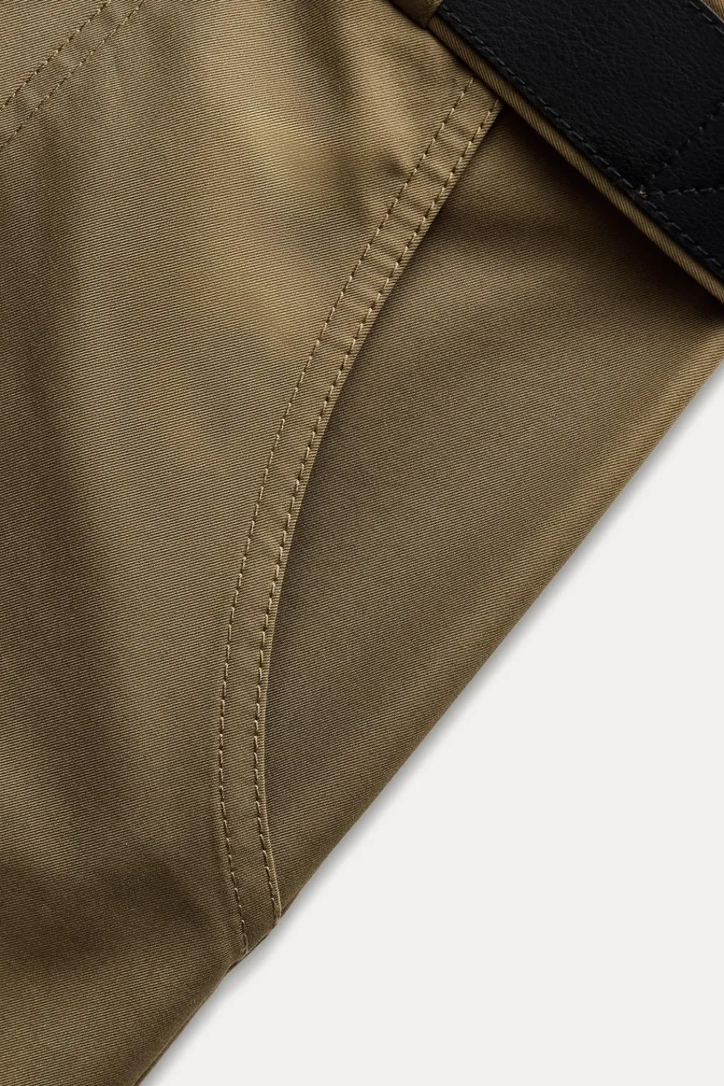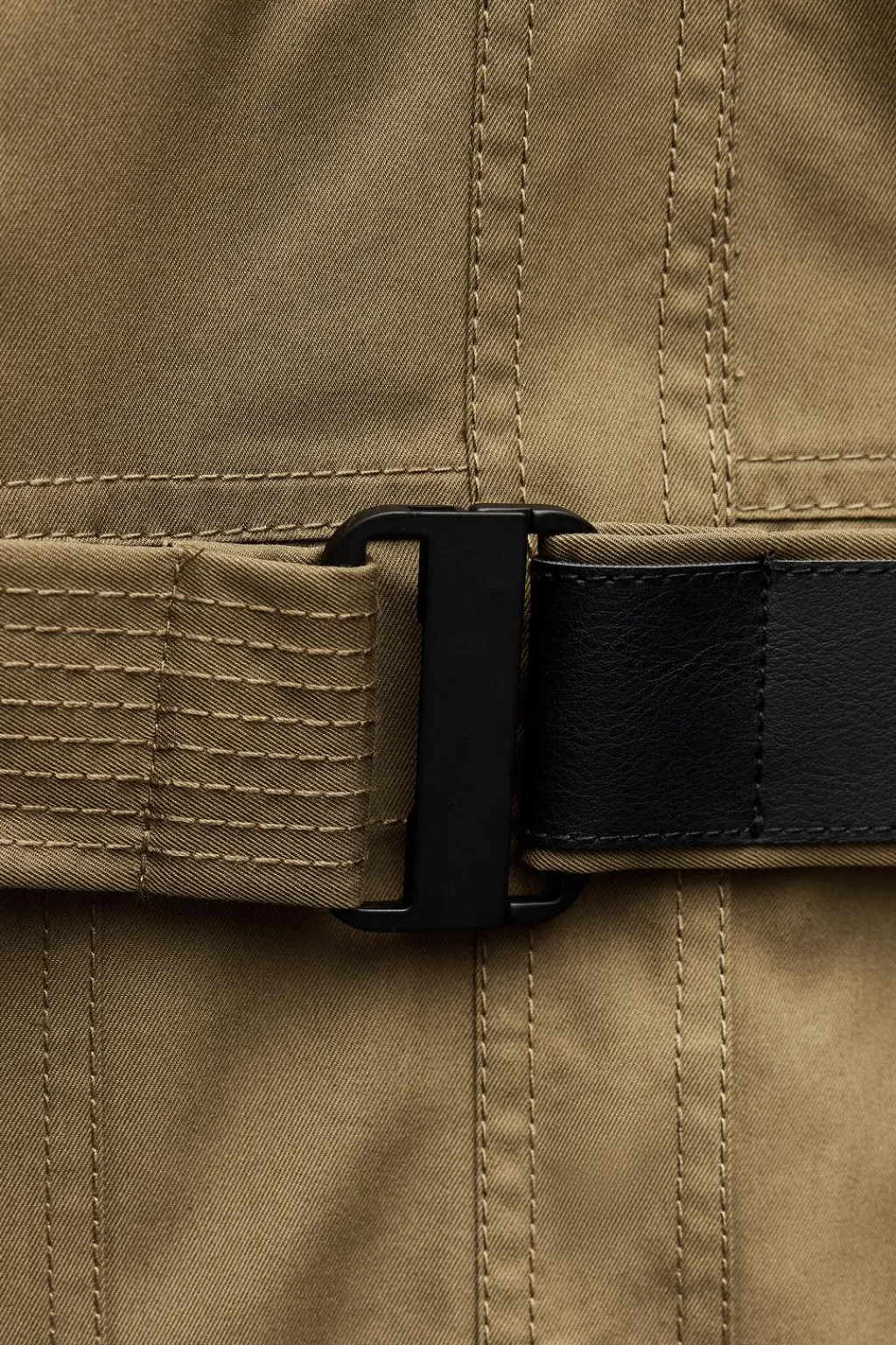 Mono largo de cuello solapa y manga corta. Bolsillos de plastrón en delantero y espalda. Cinturón combinado en tejido a contraste con cierre metálico con imanes. Costuras combinadas a tono. Cierre frontal con botones a presión ocultos por sopata.