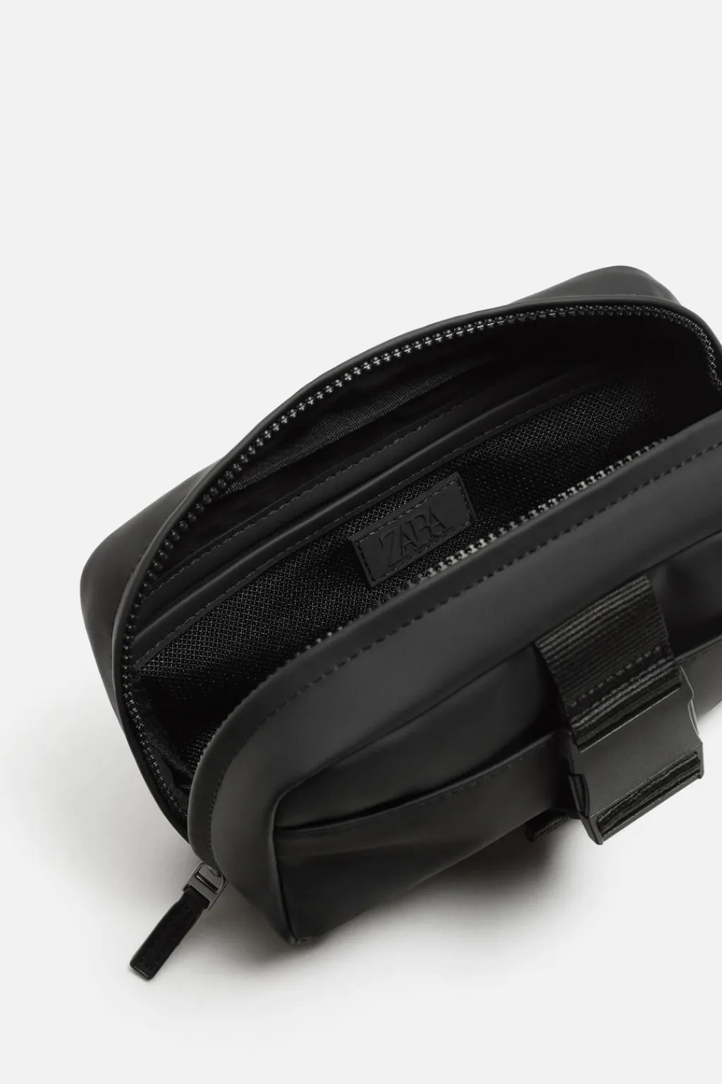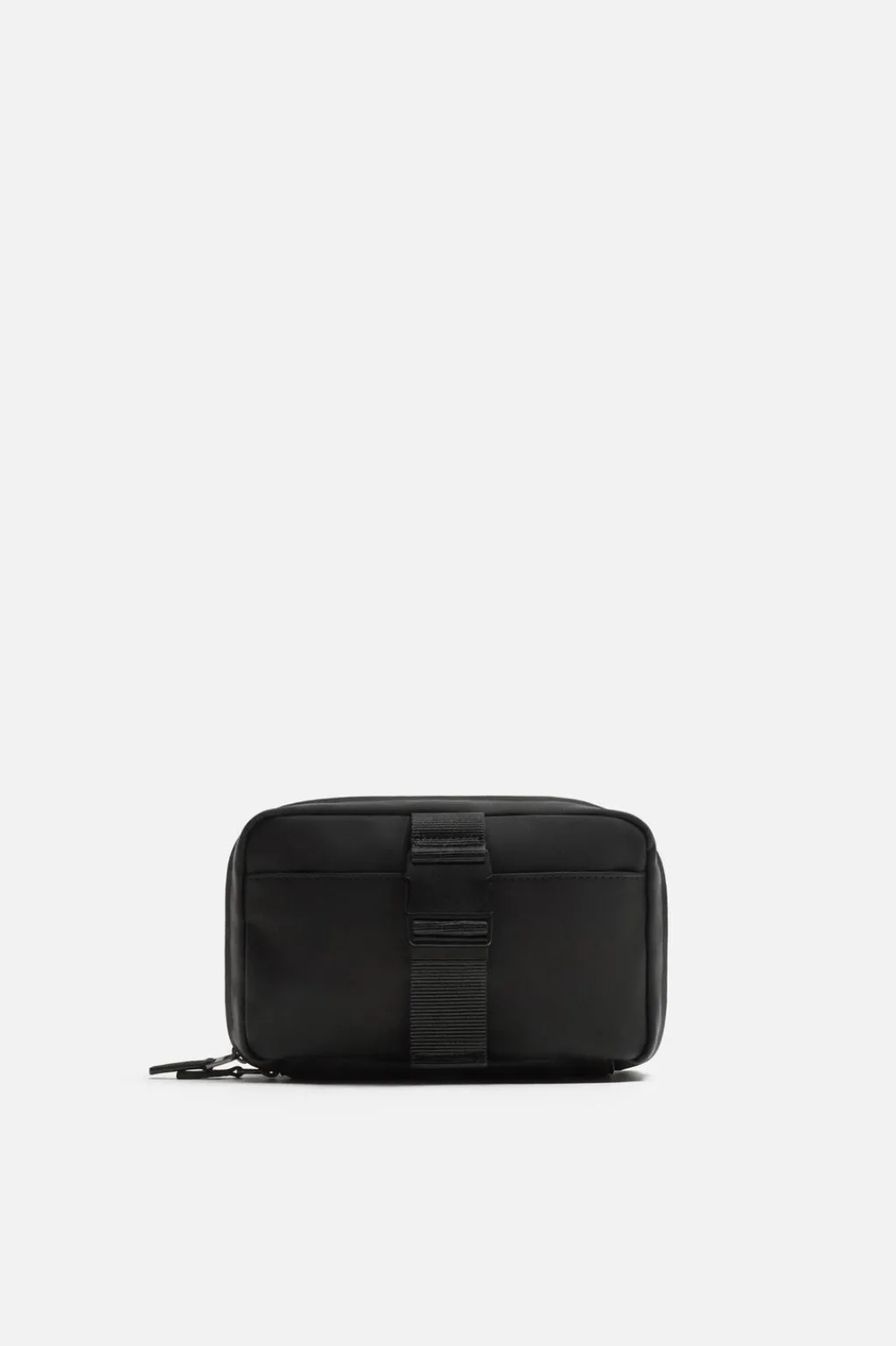 Bolsa de aseo. Acabado engomado. Compartimento principal con cierre mediante cremallera. El Interior cuenta con un bolsillo de rejilla sin cierre. En la parte frontal cuenta con un segundo compartimento con cierre de liberación rápida.