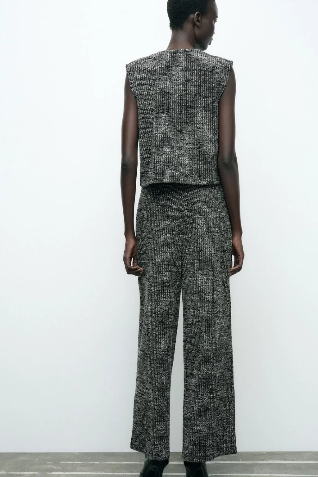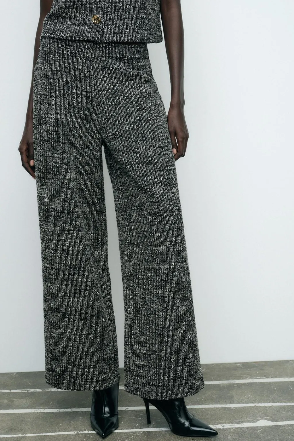 Pantalón de tiro medio y cintura con elástico. Detalle de tejido con estructura.