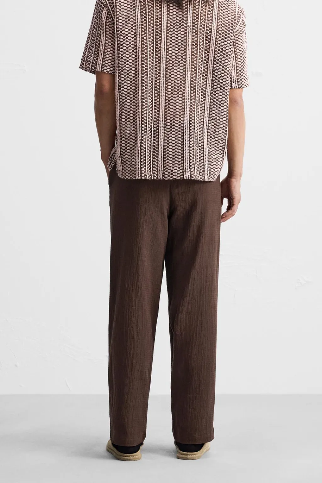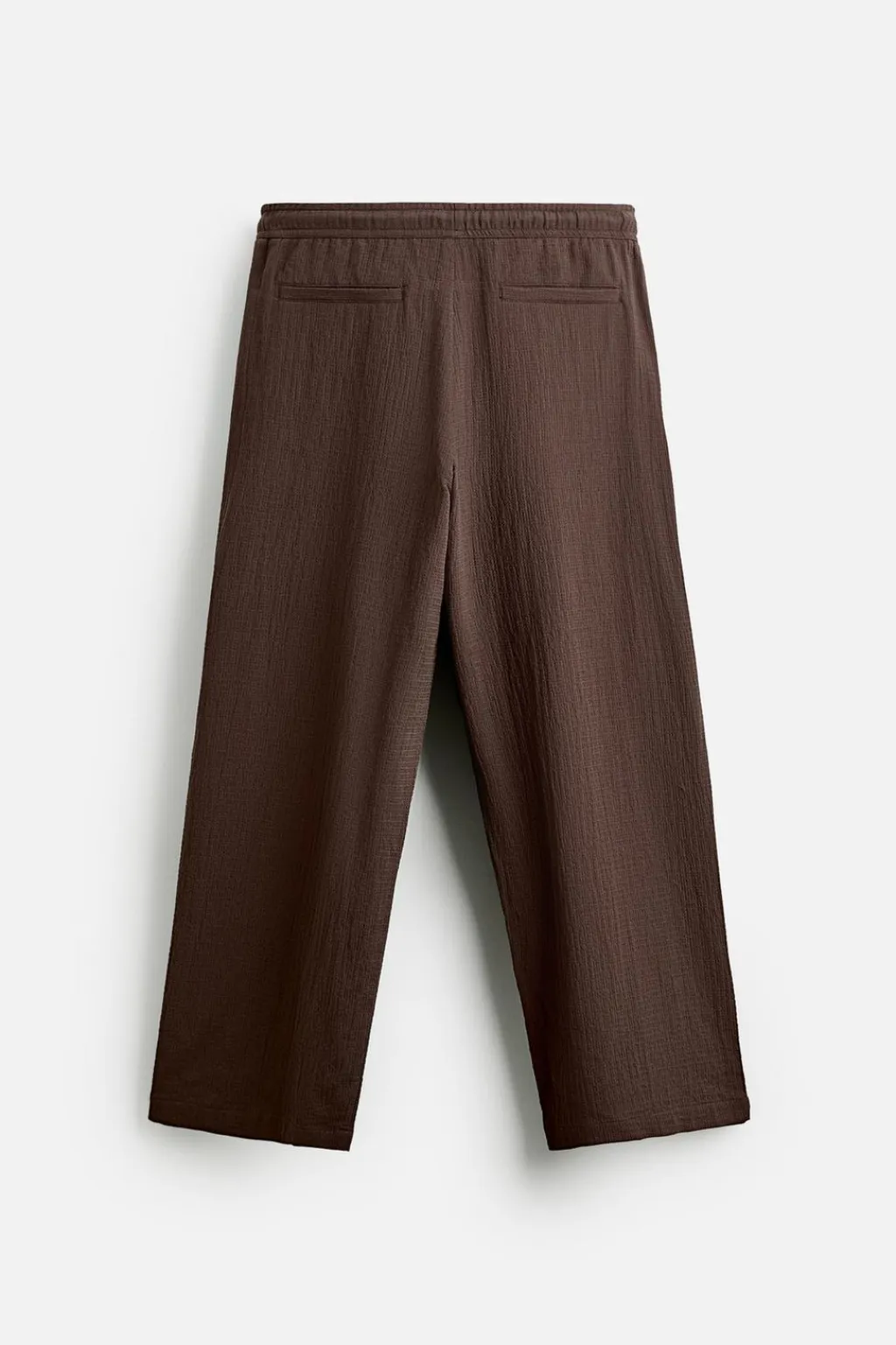 Pantalón relaxed fit confeccionado en tejido de algodón con elasticidad. Cintura elástica ajustable con cordón. Bolsillos frontales y detalle de bolsillos traseros.